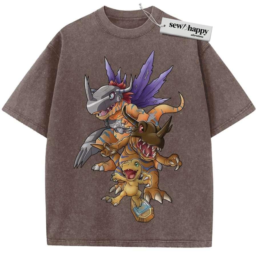 Wash Tee Agumon Shirt, Greymon Shirt, MetalGreymon Shirt, Digimon Adventure Shirt, Anime Shirt, Vintage Tee