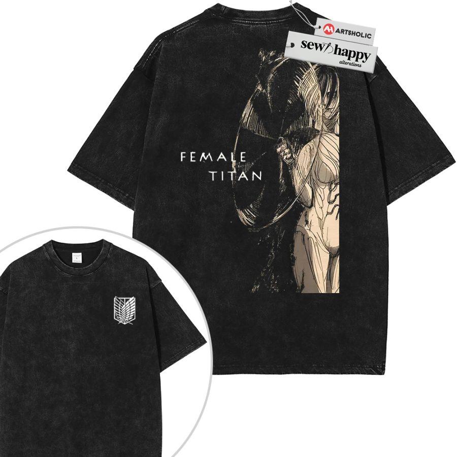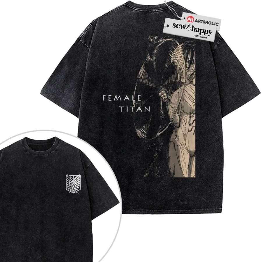 Wash Tee Annie Leonhart Shirt, Female Titan Shirt, Attack On Titan Shirt, AOT Shirt, Anime Shirt, Vintage Tee 2-Sided