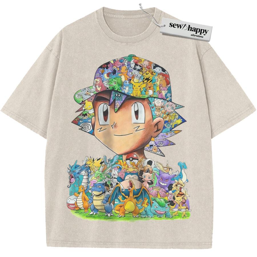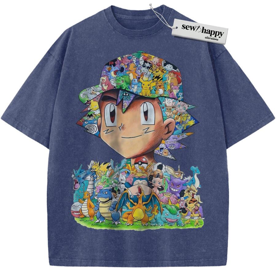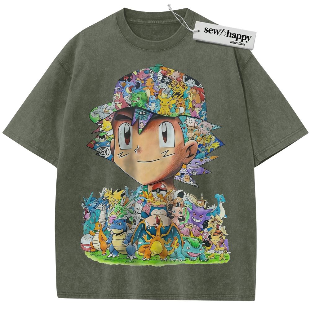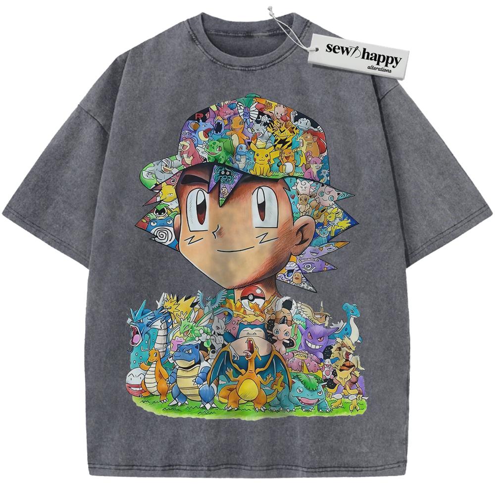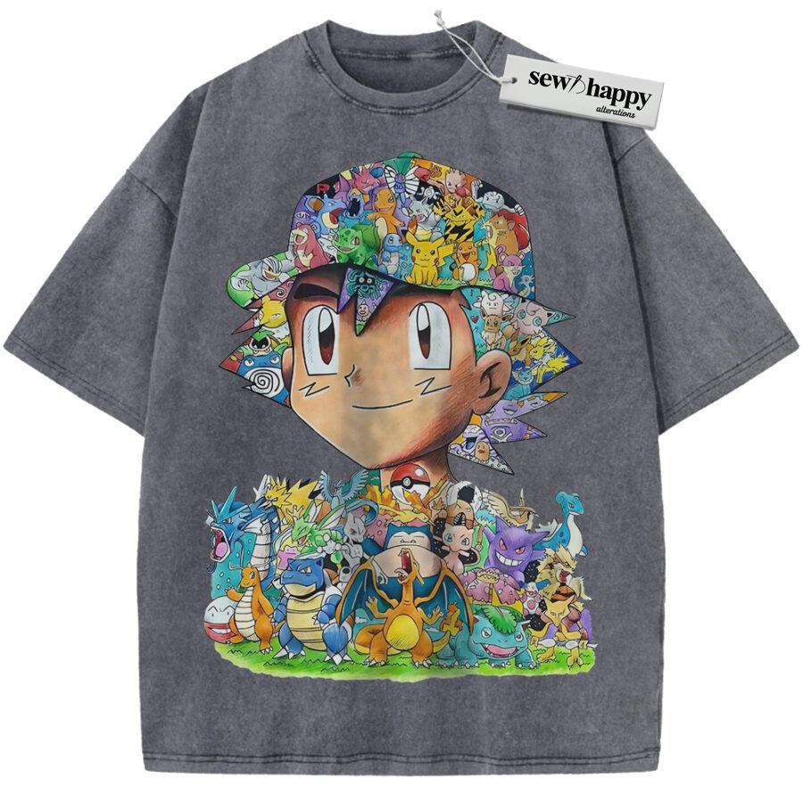 Wash Tee Ash Ketchum Shirt, Pokemon Shirt, PKM Shirt, Anime Shirt, Vintage T-Shirt