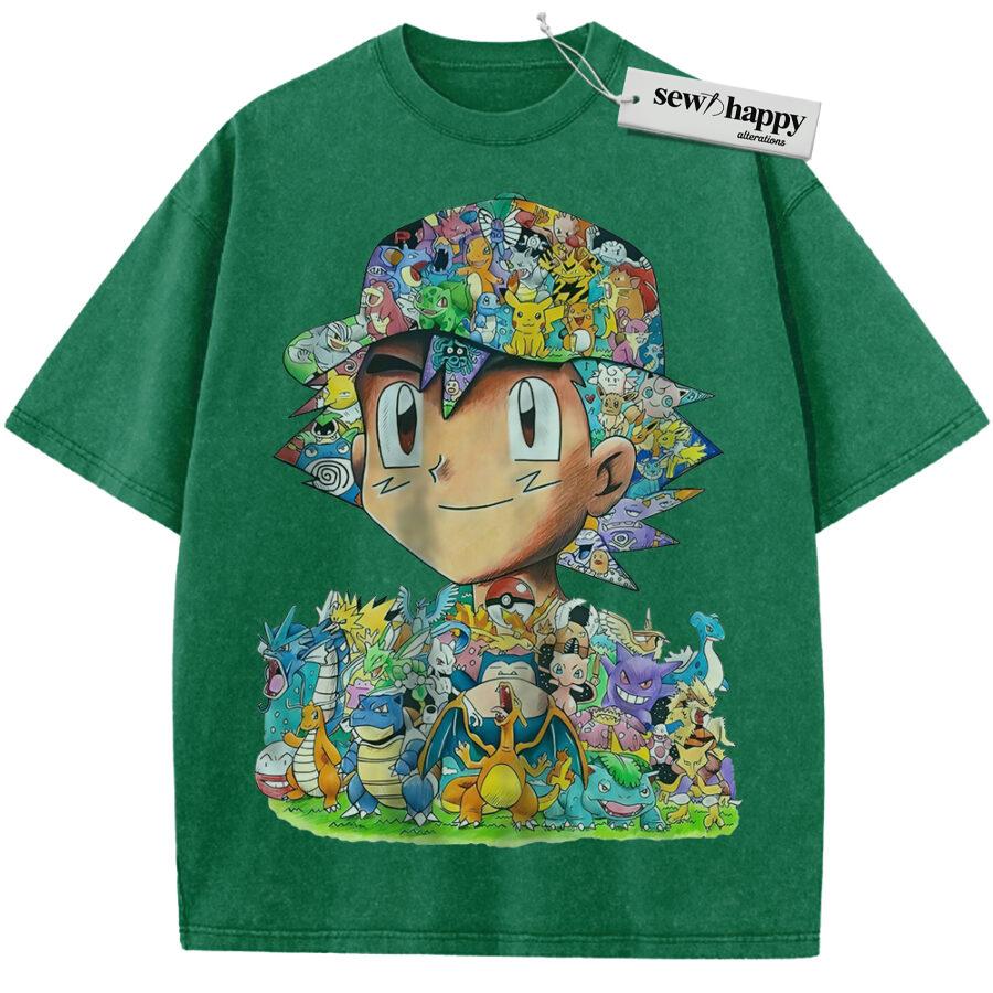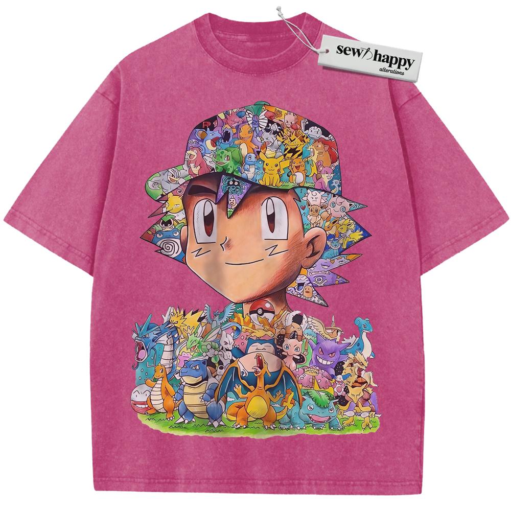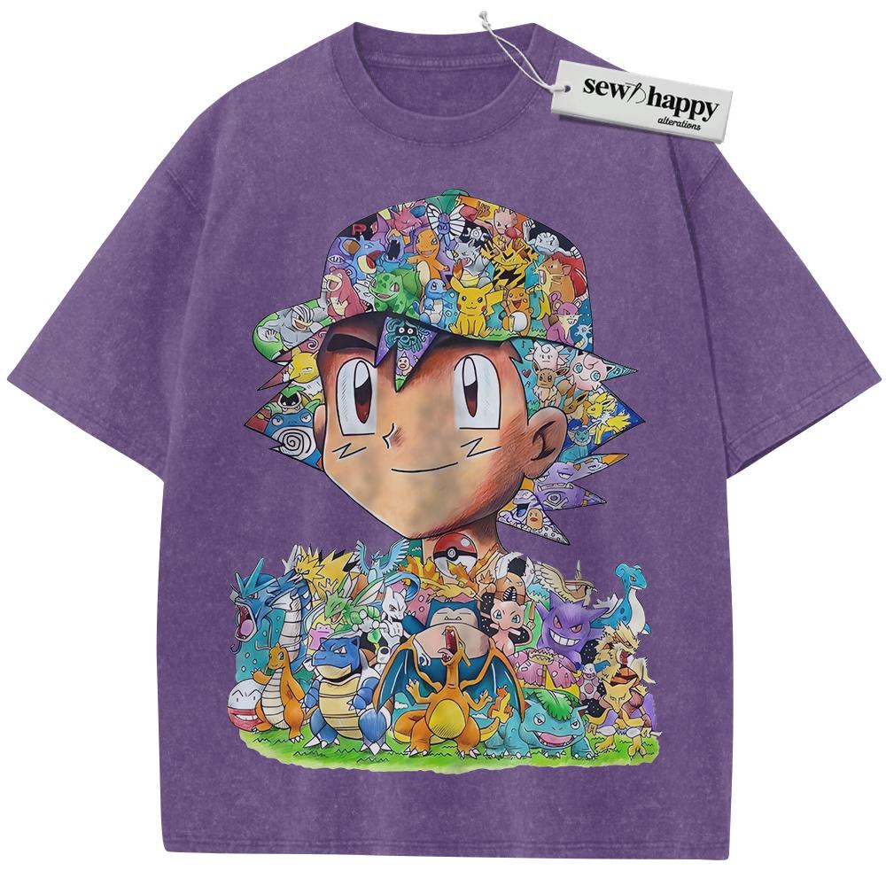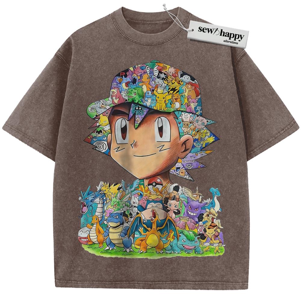 Wash Tee Ash Ketchum Shirt, Pokemon Shirt, PKM Shirt, Anime Shirt, Vintage T-Shirt