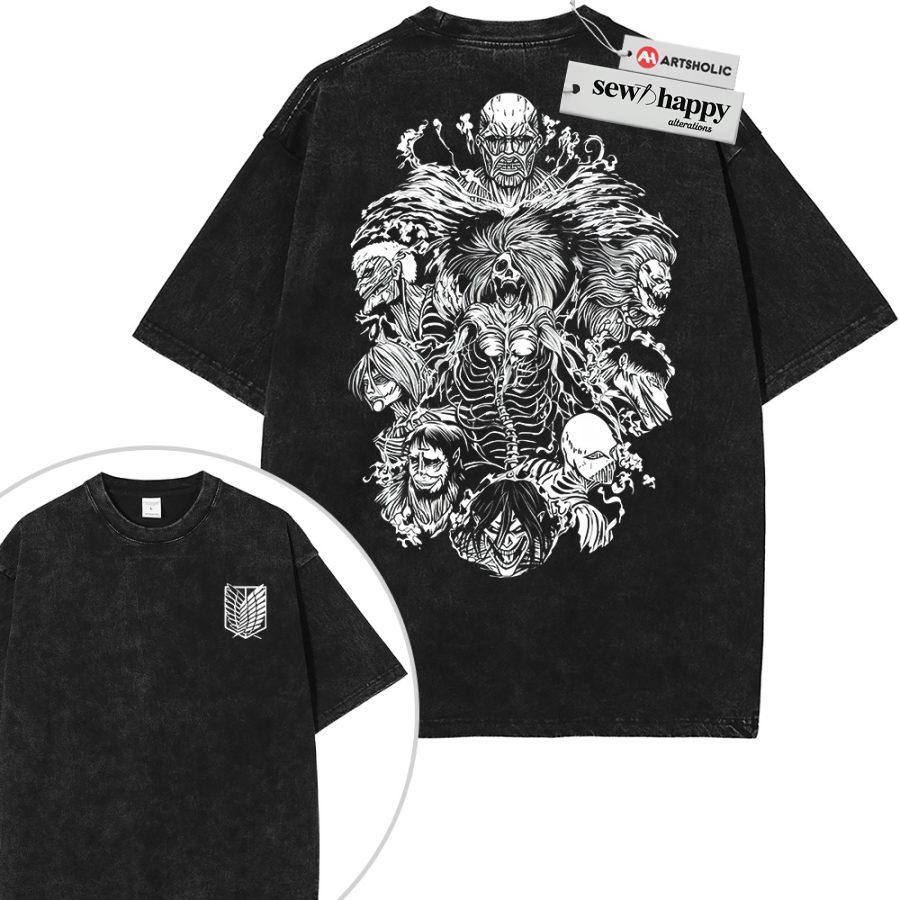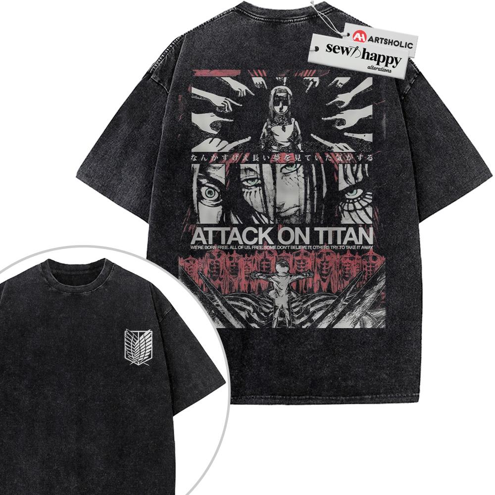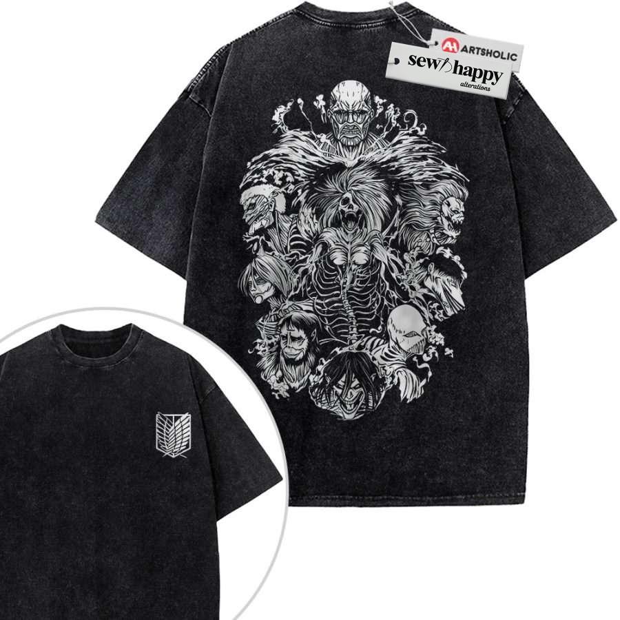 Wash Tee Attack On Titan Shirt, AOT Shirt, Anime Shirt, Vintage T-Shirt 2-Sided