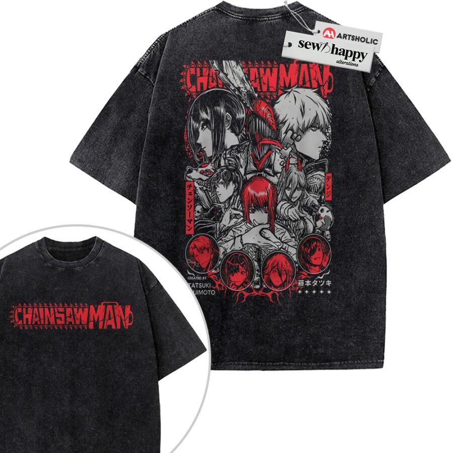 Wash Tee Chainsaw Man Shirt, Anime Shirt, Vintage Tee 2-Sided