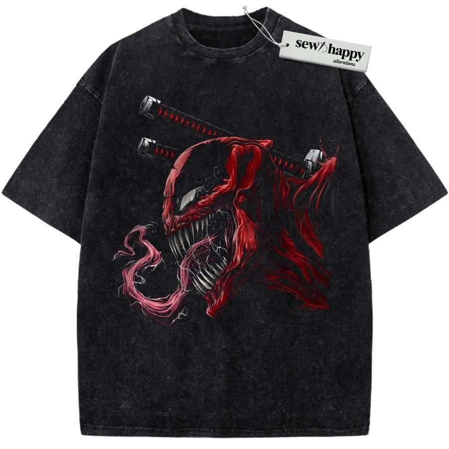 Wash Tee Deadpool x Venom Shirt, Marvel Comics Shirt, Vintage T-Shirt