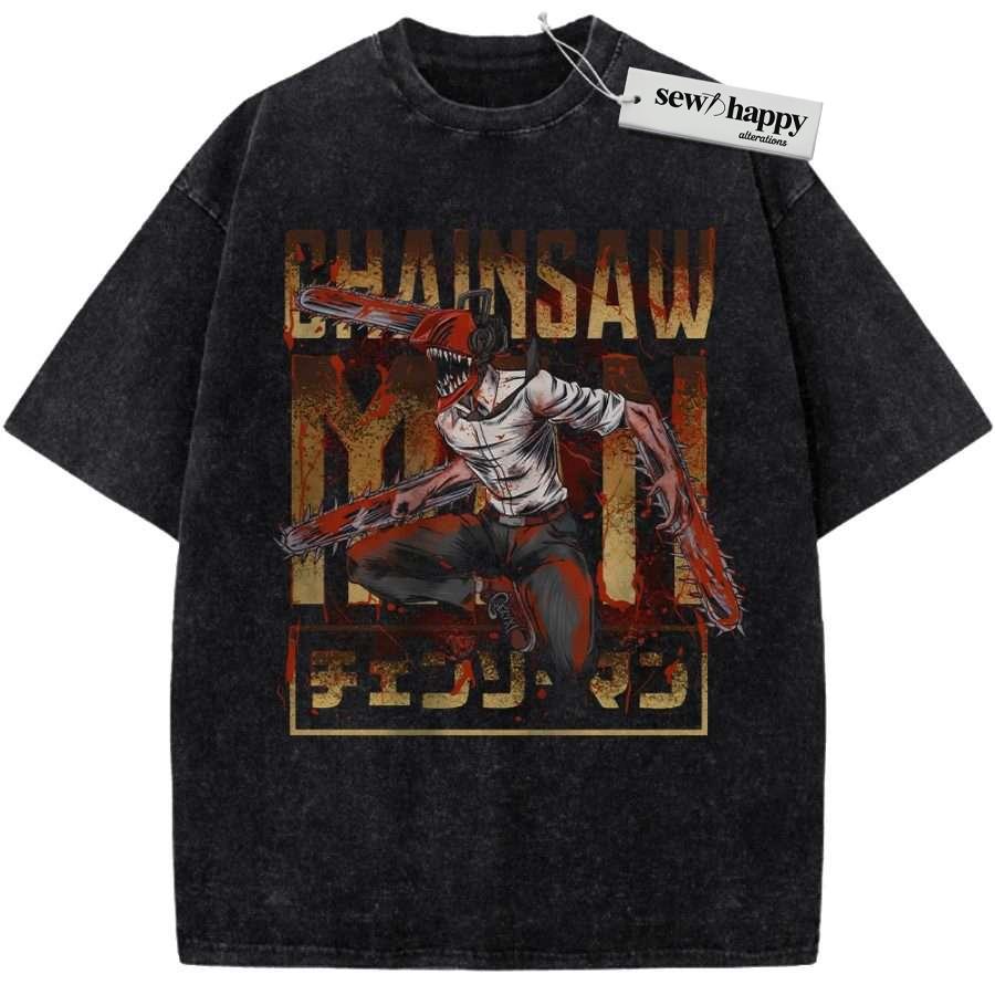 Wash Tee Denji – Chainsaw Devil Shirt, Chainsaw Man Shirt, Anime Shirt, Vintage T-Shirt