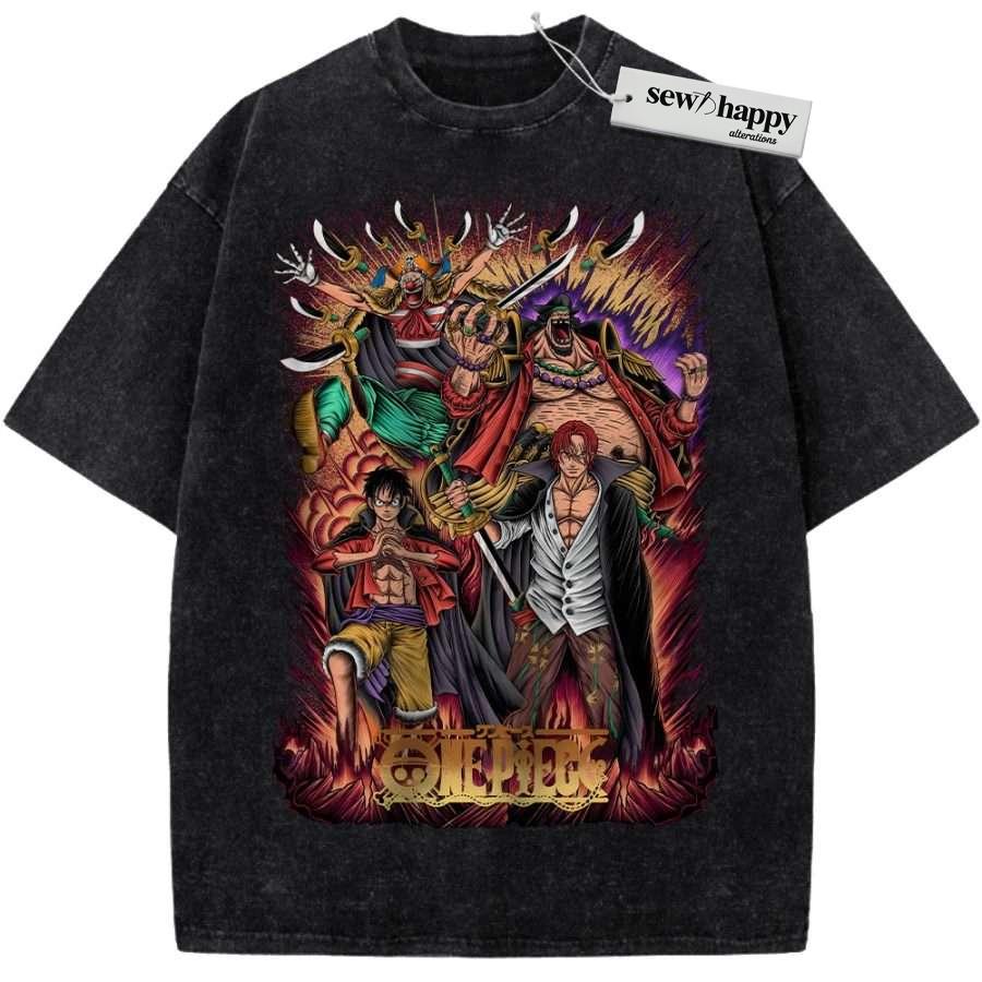 Wash Tee Four Emperors One Piece Shirt, Anime Shirt, Vintage Tee