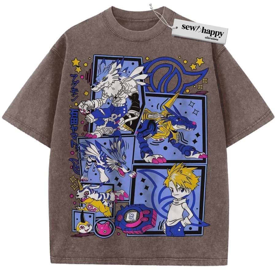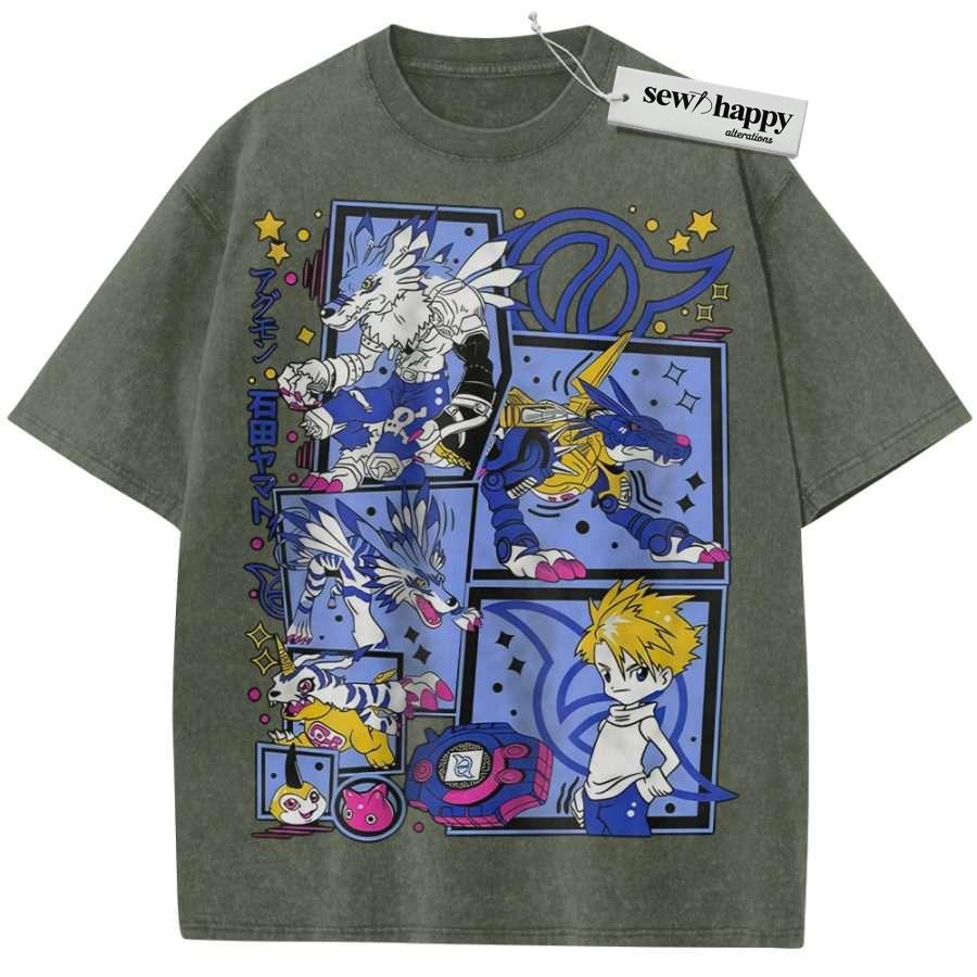 Wash Tee Gabumon Shirt, Garurumon Shirt, WereGarurumon Shirt, MetalGarurumon Shirt, Digimon Adventure Shirt, Anime Shirt, Vintage T-Shirt