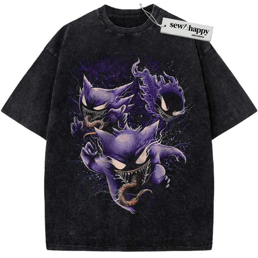 Wash Tee Gengar Gatsly vs Haunter Shirt, Pokemon shirt, Anime Shirt, Vintage T-Shirt