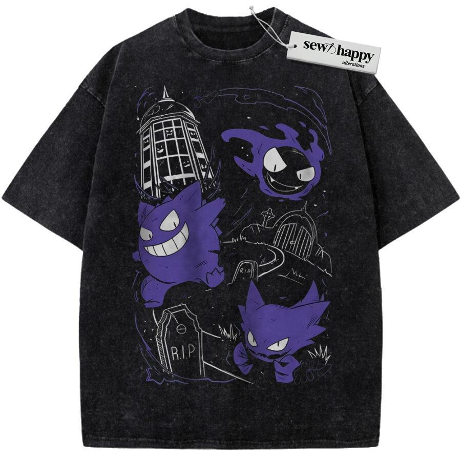 Wash Tee Gengar Shirt, Haunter Shirt, Gatsly Shirt, Pokemon Shirt, PKM Shirt, Anime Shirt, Vintage T-Shirt