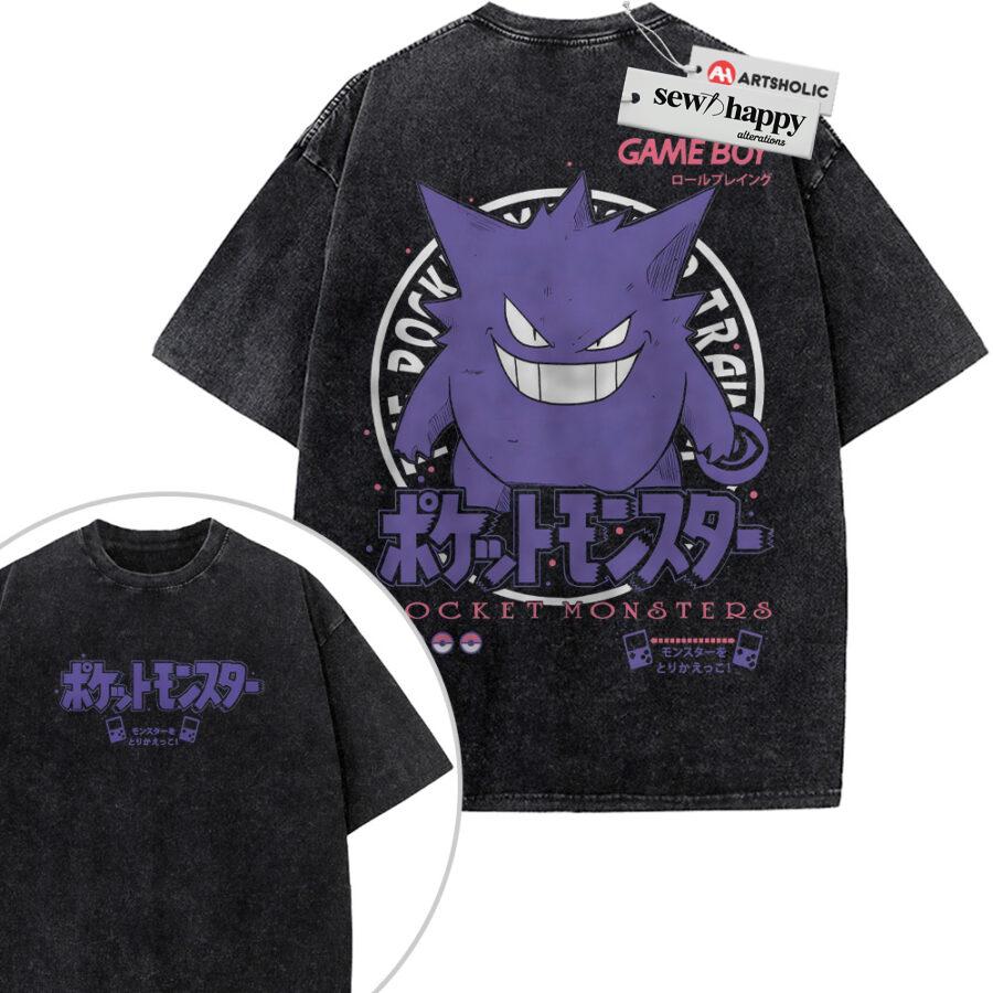 Wash Tee Gengar Shirt, Pokemon Shirt, Anime Shirt, Vintage T-Shirt 2-Sided