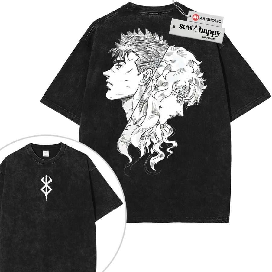 Wash Tee Griffith Shirt, Guts Shirt, Berserk Shirt, Anime Shirt, Vintage T-Shirt 2-Sided