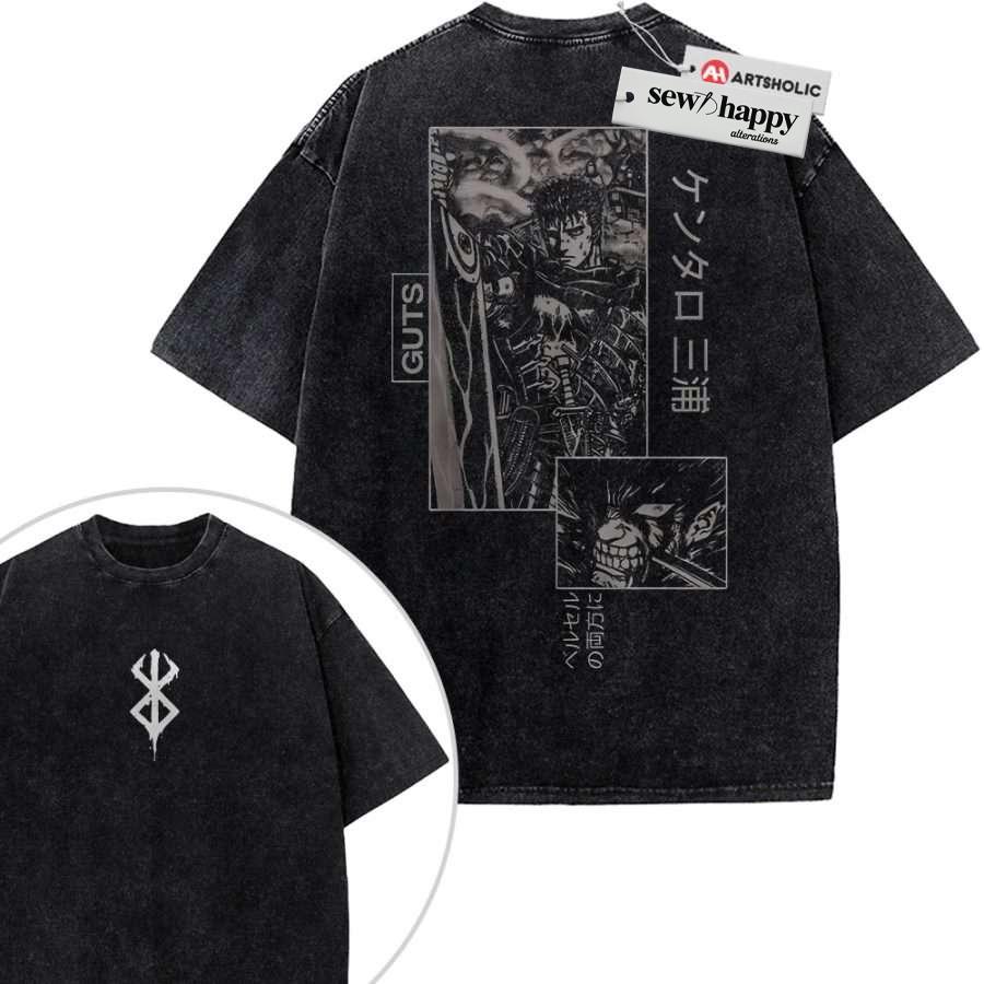 Wash Tee Guts Shirt, Berserk Shirt, Anime Shirt, Vintage Tee 2-Sided