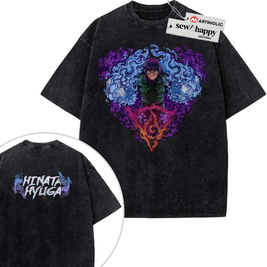Wash Tee Hinata Hyuga Shirt, Naruto Shirt, Anime Shirt, Vintage T-Shirt 2-Sided