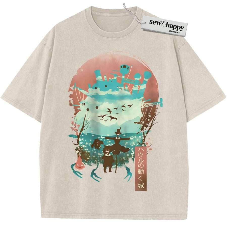 Wash Tee Howl’s Moving Castle Shirt, Studio Ghibli Shirt, Anime Shirt, Vintage Tee