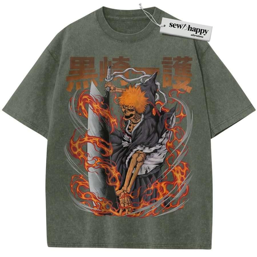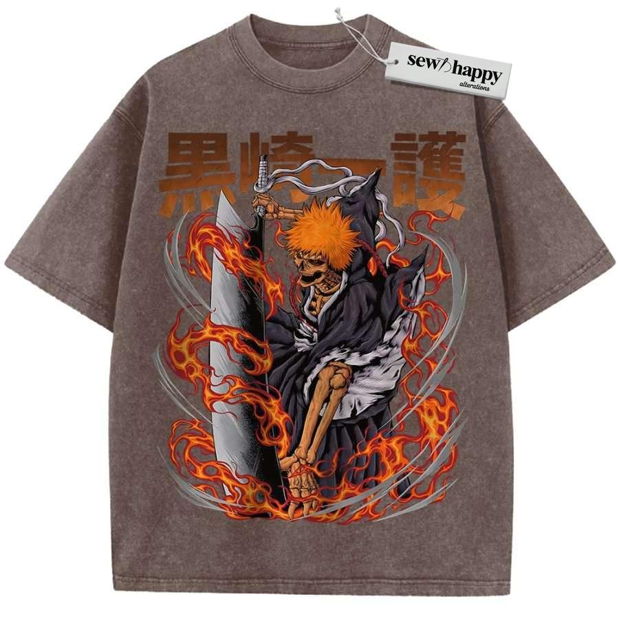 Wash Tee Ichigo Kurosaki Shirt, Bleach Shirt, Anime Shirt, Vintage T-Shirt