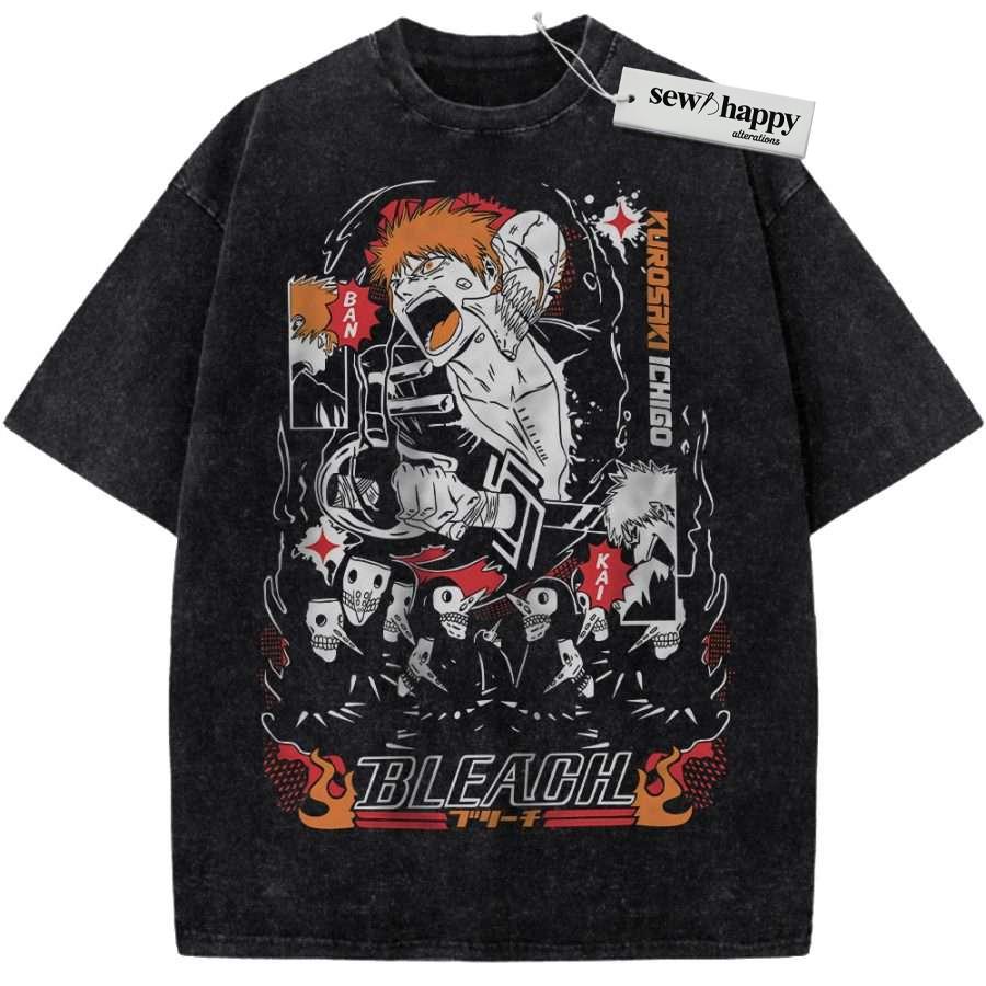 Wash Tee Ichigo Kurosaki Shirt, Bleach Shirt, Anime Shirt, Vintage Tee