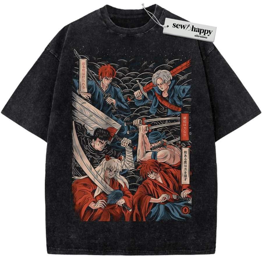 Wash Tee Inuyasha Shirt, Guts Shirt, Zoro Shirt, Ichigo Shirt, Trunks Shirt, Kenshin Himura Shirt, Anime Shirt, Vintage Tee