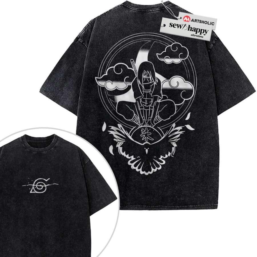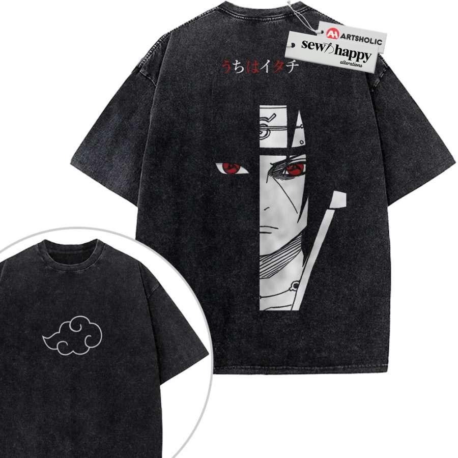Wash Tee Itachi Uchiha Shirt, Naruto Shirt, Anime Shirt, Vintage T-Shirt 2-Sided