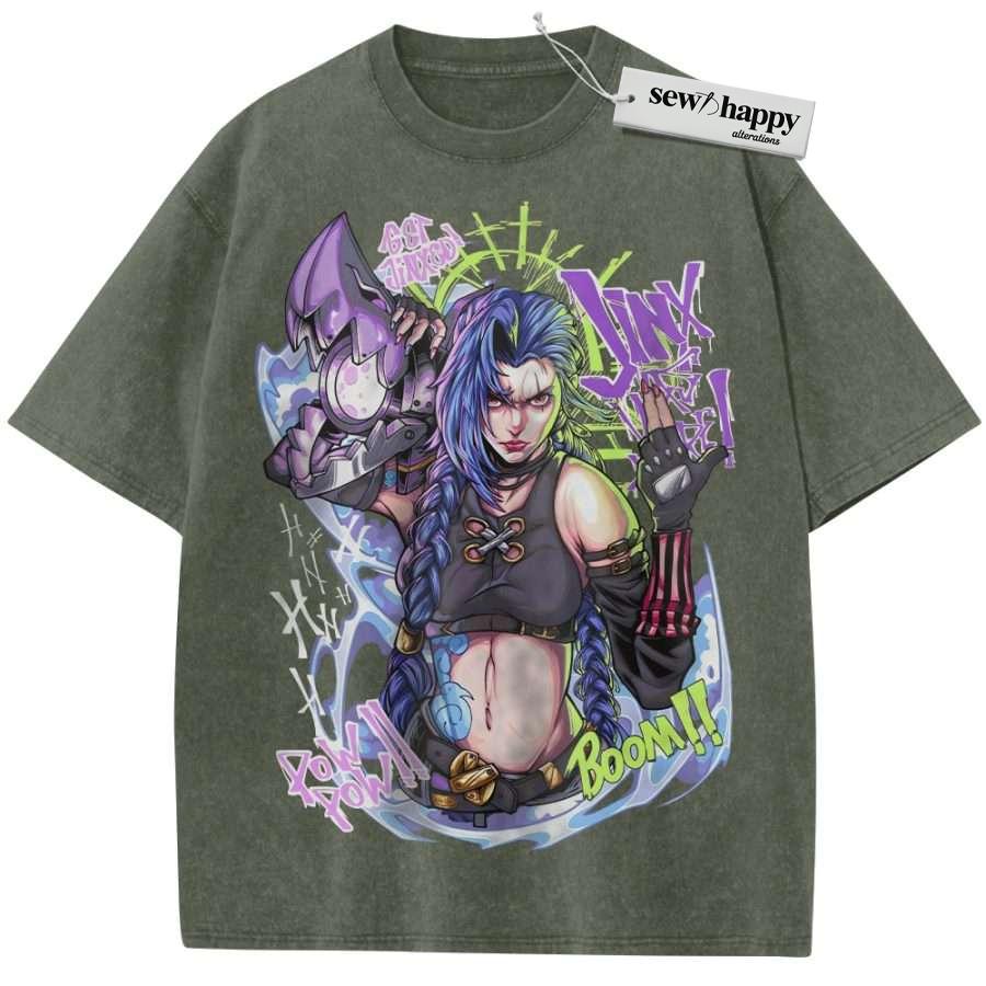 Wash Tee Jinx – Arcane Shirt, League of Legends Shirt, Game Shirt, Vintage T-Shirt