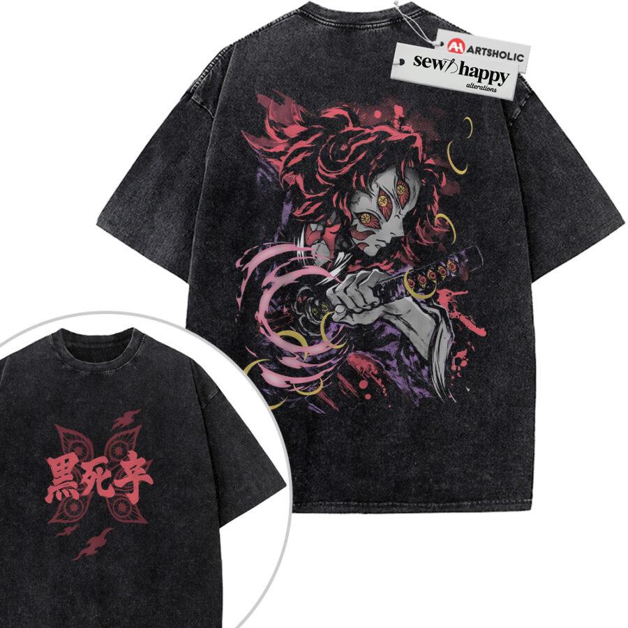 Wash Tee Kokushibo Shirt, Demon Slayer Shirt, Anime Shirt, Vintage T-Shirt 2-Sided