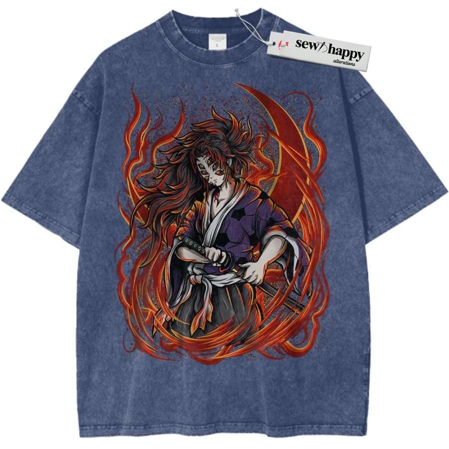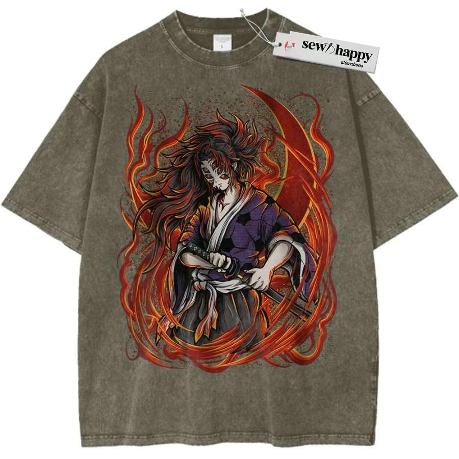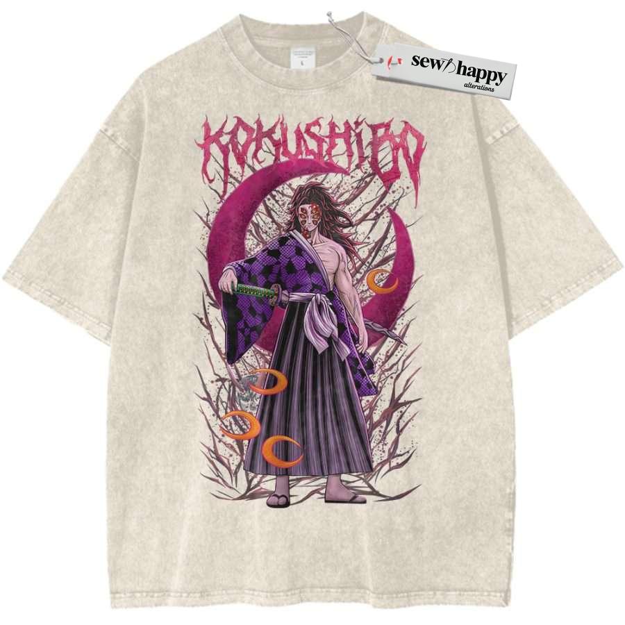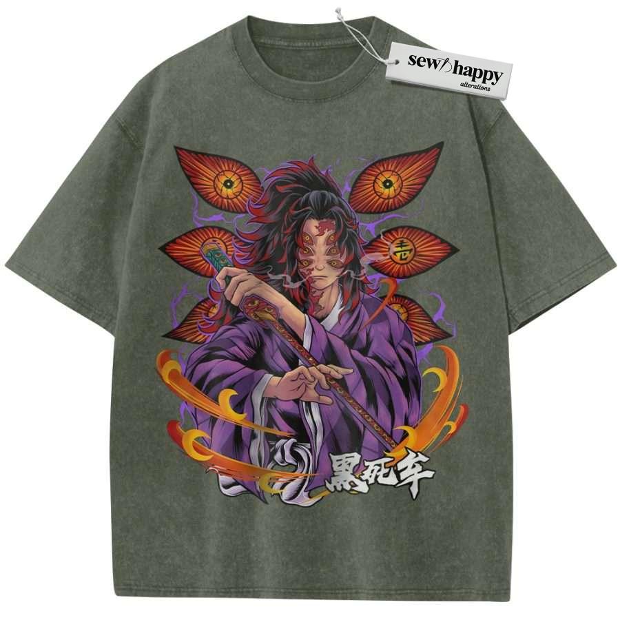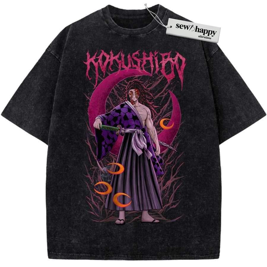 Wash Tee Kokushibo Shirt, Demon Slayer Shirt, Anime Shirt, Vintage T-Shirt