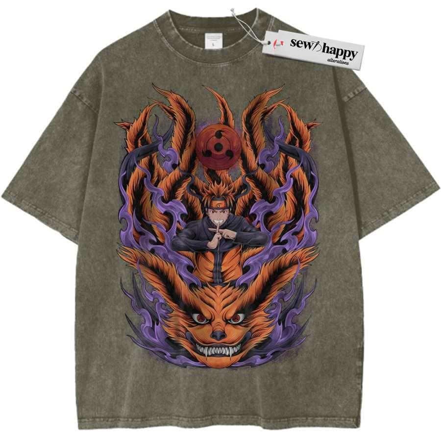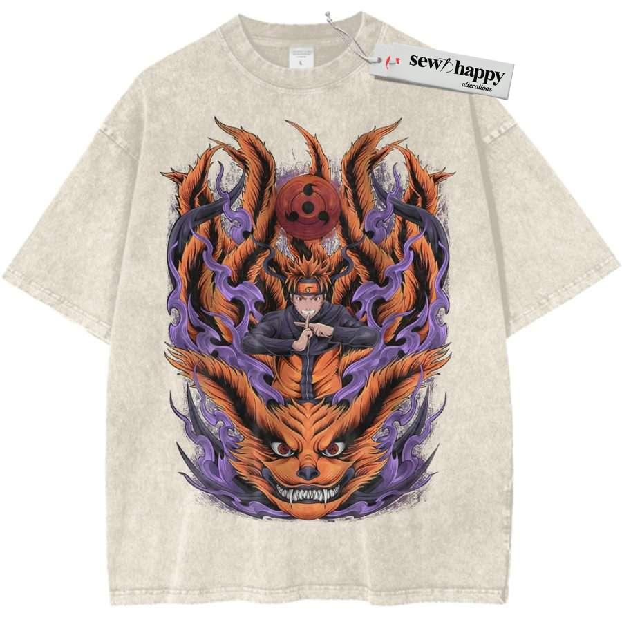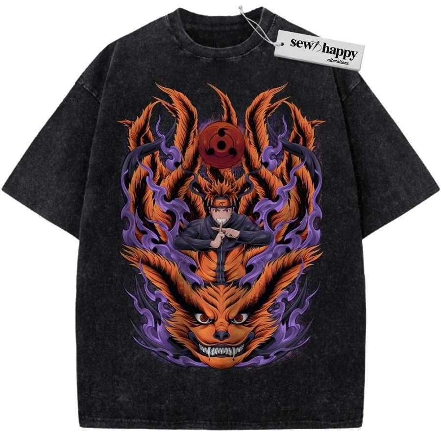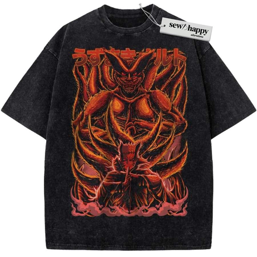 Wash Tee Kurama vs Naruto Uzumaki Shirt, Anime Shirt, Vintage T-Shirt
