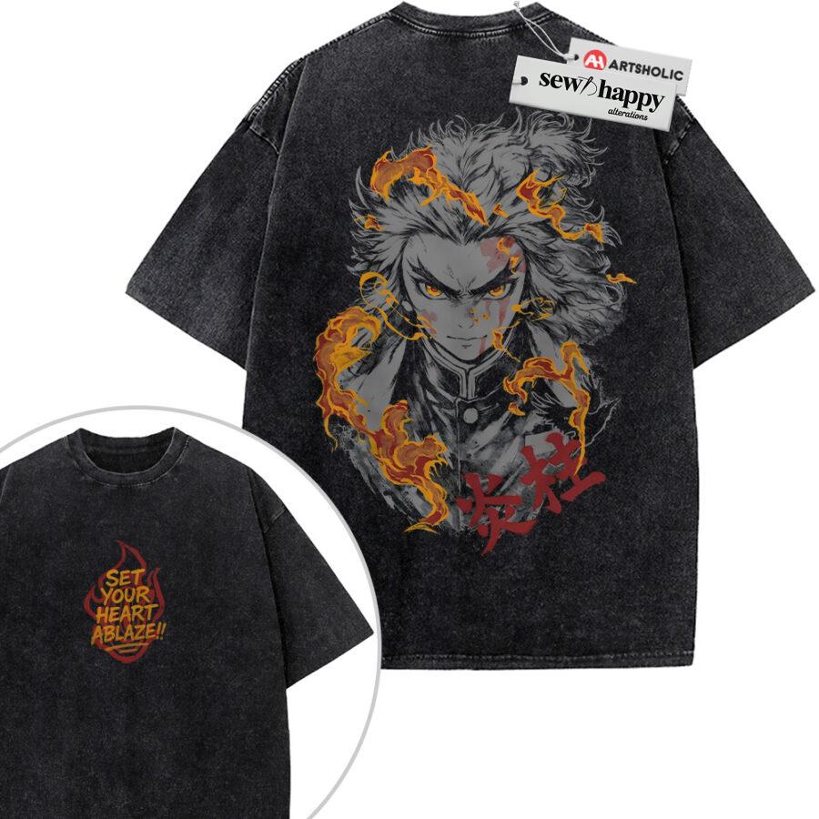 Wash Tee Kyojuro Rengoku Shirt, Demon Slayer Shirt, Anime Shirt, Vintage Tee 2-Sided