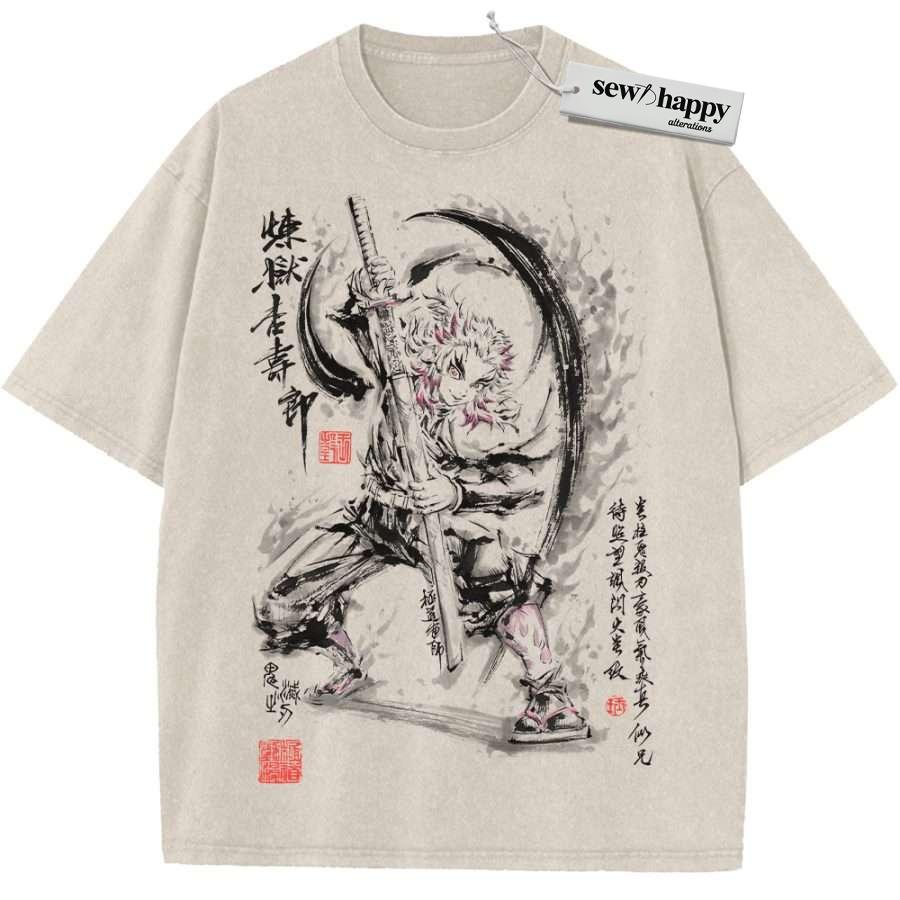 Wash Tee Kyojuro Rengoku Shirt, Demon Slayer Shirt, Anime Shirt, Vintage Tee