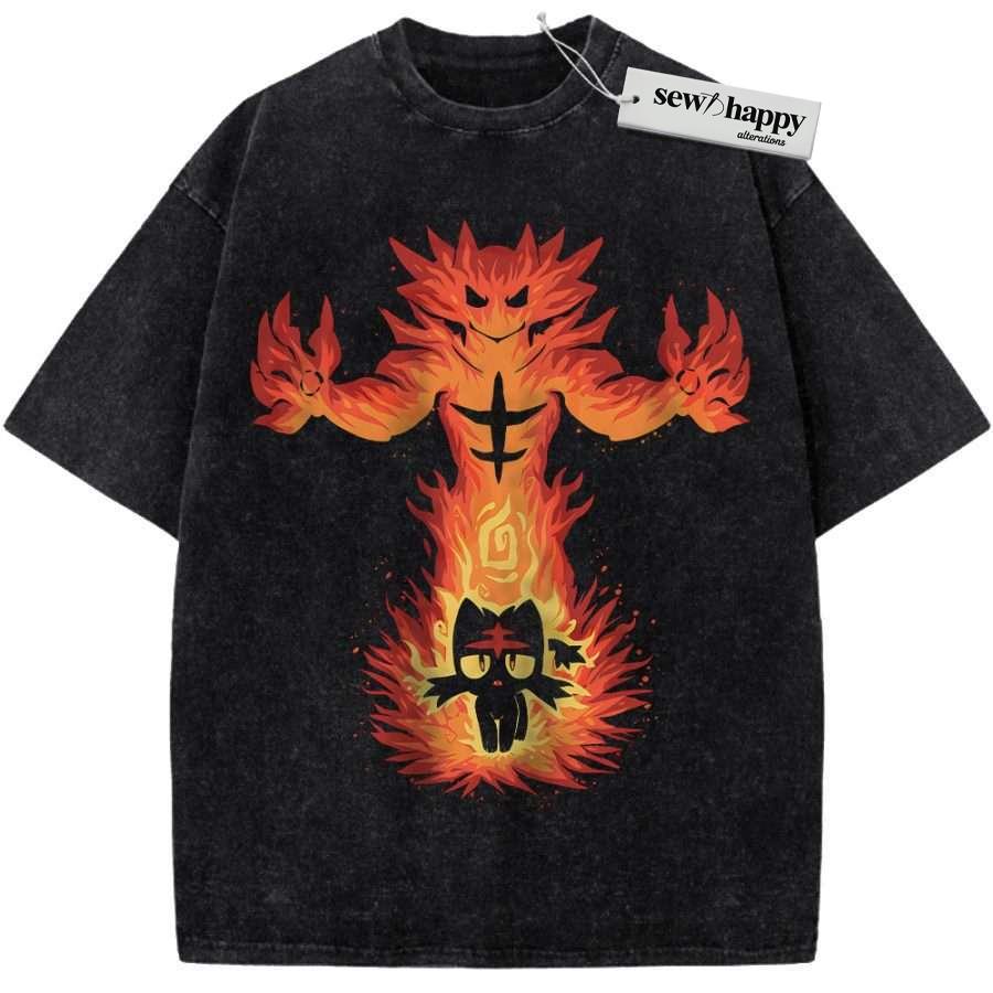 Wash Tee Litten Shirt, Incineroar Shirt, Pokemon shirt, Anime Shirt, Vintage Tee