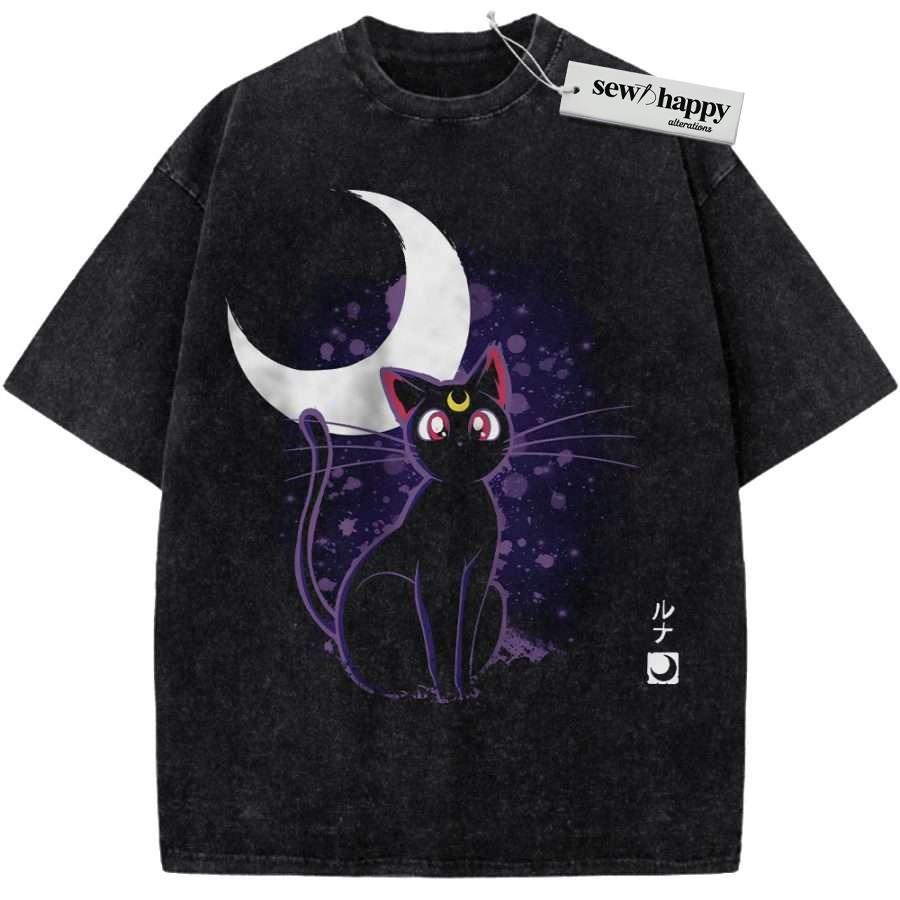 Wash Tee Luna Cat Shirt, Sailor Moon Shirt, Anime Shirt, Vintage Tee