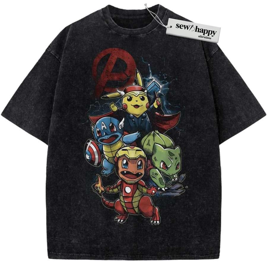Wash Tee Marvel Shirt, Pokemon shirt, Anime Shirt, Vintage Tee