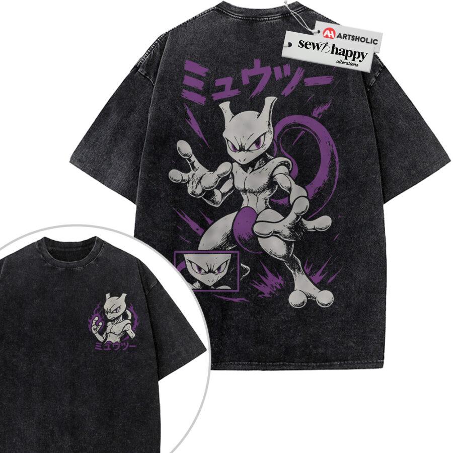 Wash Tee Mewtwo Shirt, Pokemon Shirt, Anime Shirt, Vintage Tee 2-Sided