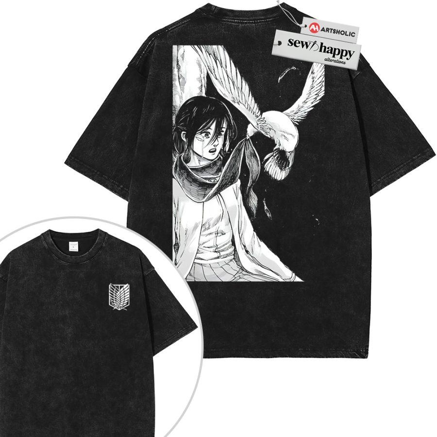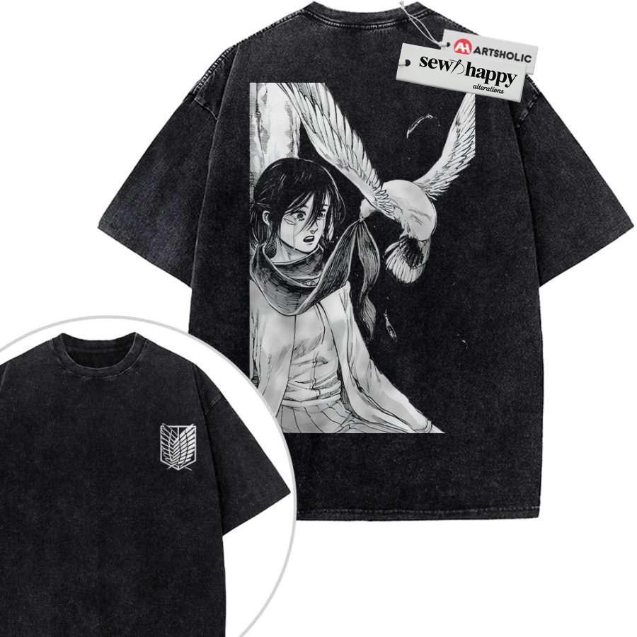 Wash Tee Mikasa Ackerman Shirt, Attack On Titan Shirt, AOT Shirt, Anime Shirt, Vintage T-Shirt 2-Sided