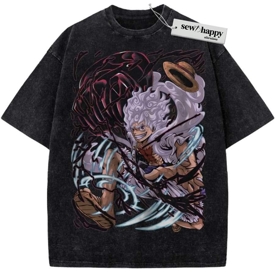 Wash Tee Monkey D Luffy Shirt, God Nika Shirt, One Piece Shirt, Anime Shirt, Vintage T-Shirt