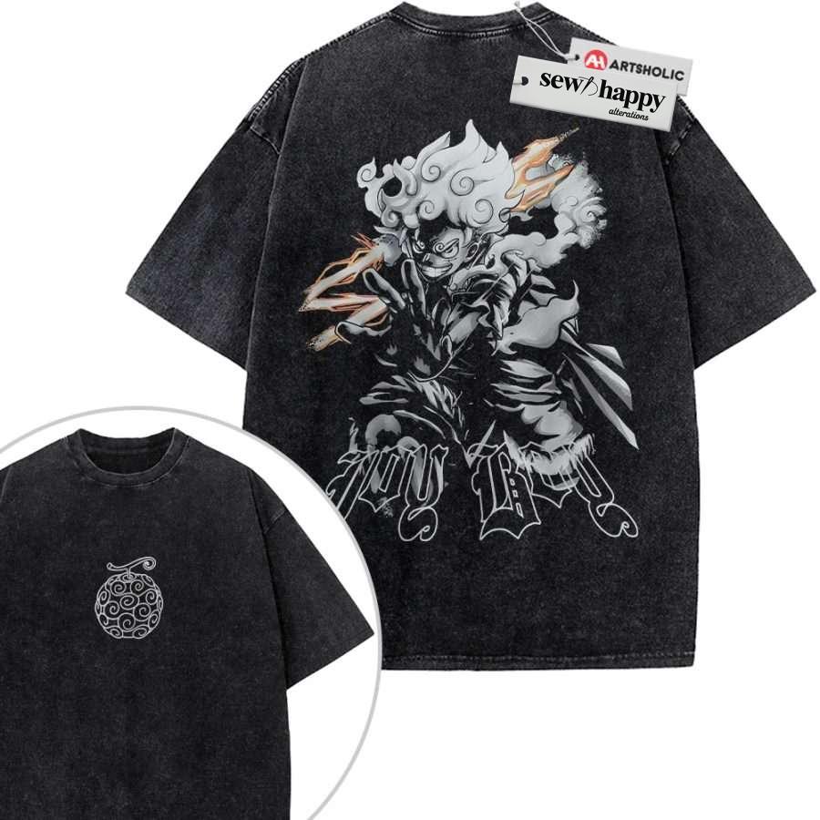 Wash Tee Monkey D Luffy Shirt, One Piece Shirt, Anime Shirt, Vintage T-Shirt 2-Sided
