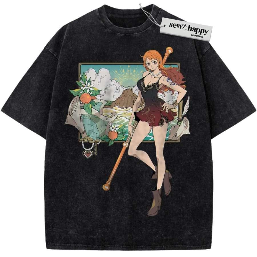 Wash Tee Nami Shirt, One Piece Shirt, Anime Shirt, Vintage T-Shirt