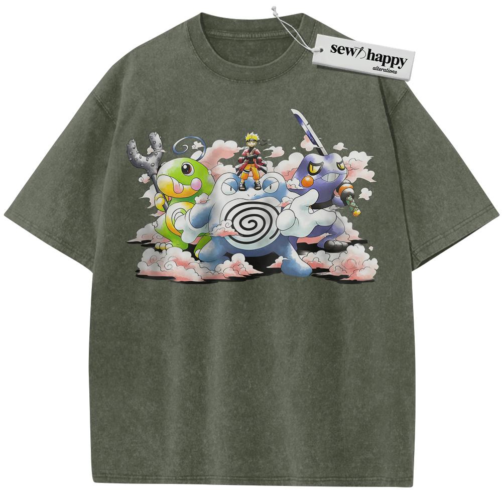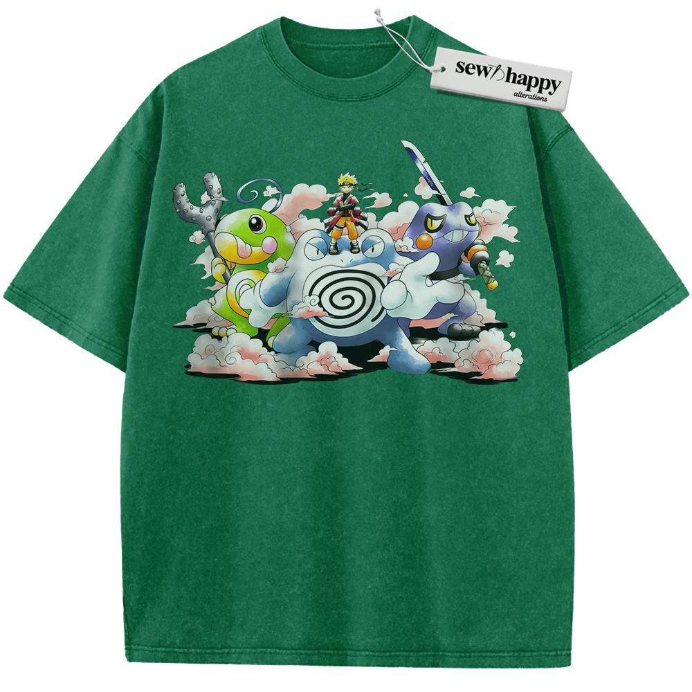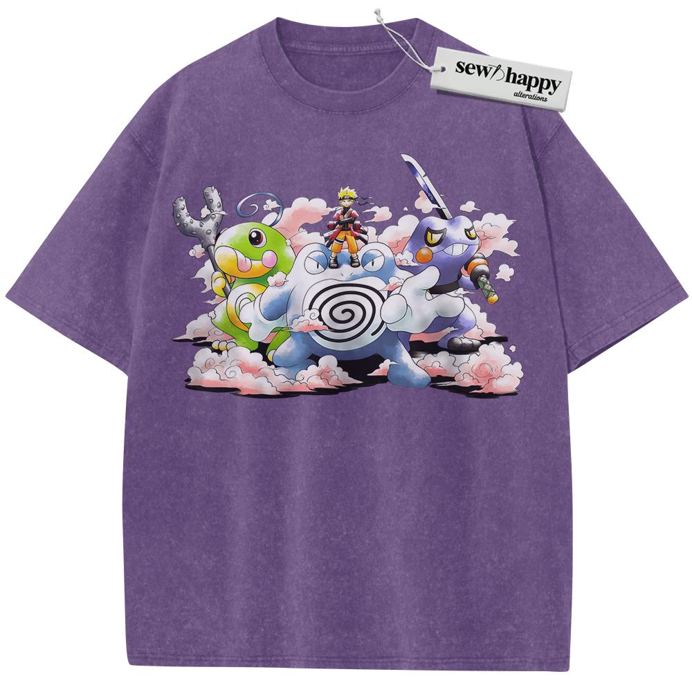 Wash Tee Naruto x Pokemon Shirt, Anime Shirt, Vintage T-Shirt