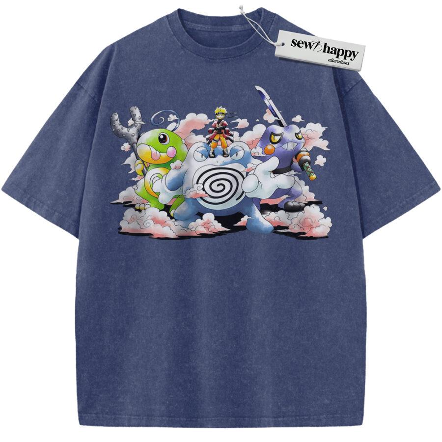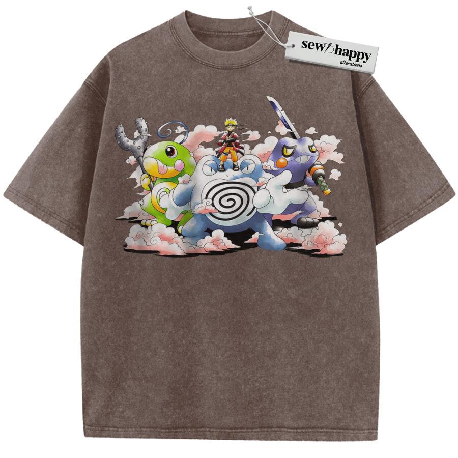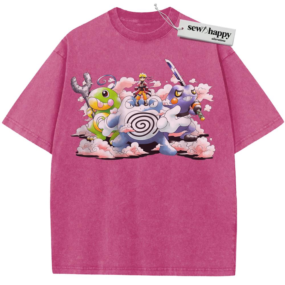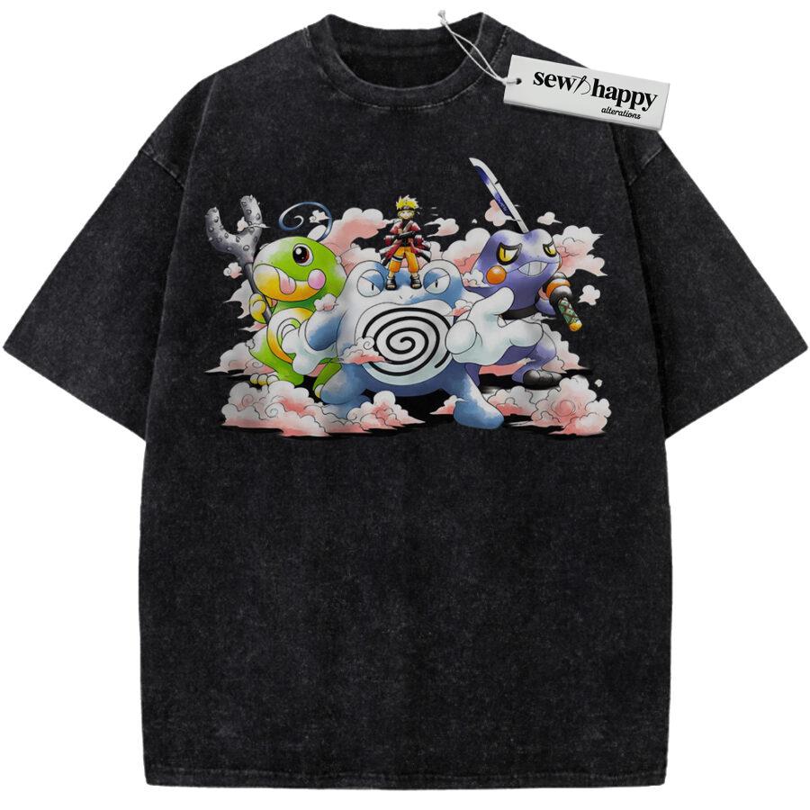 Wash Tee Naruto x Pokemon Shirt, Anime Shirt, Vintage T-Shirt