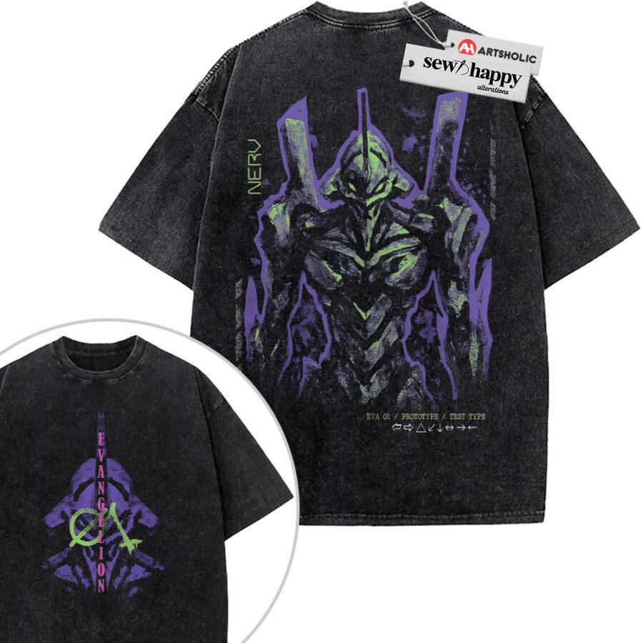 Wash Tee Neon Genesis Evangelion Shirt, Anime Shirt, Vintage T-Shirt 2-Sided