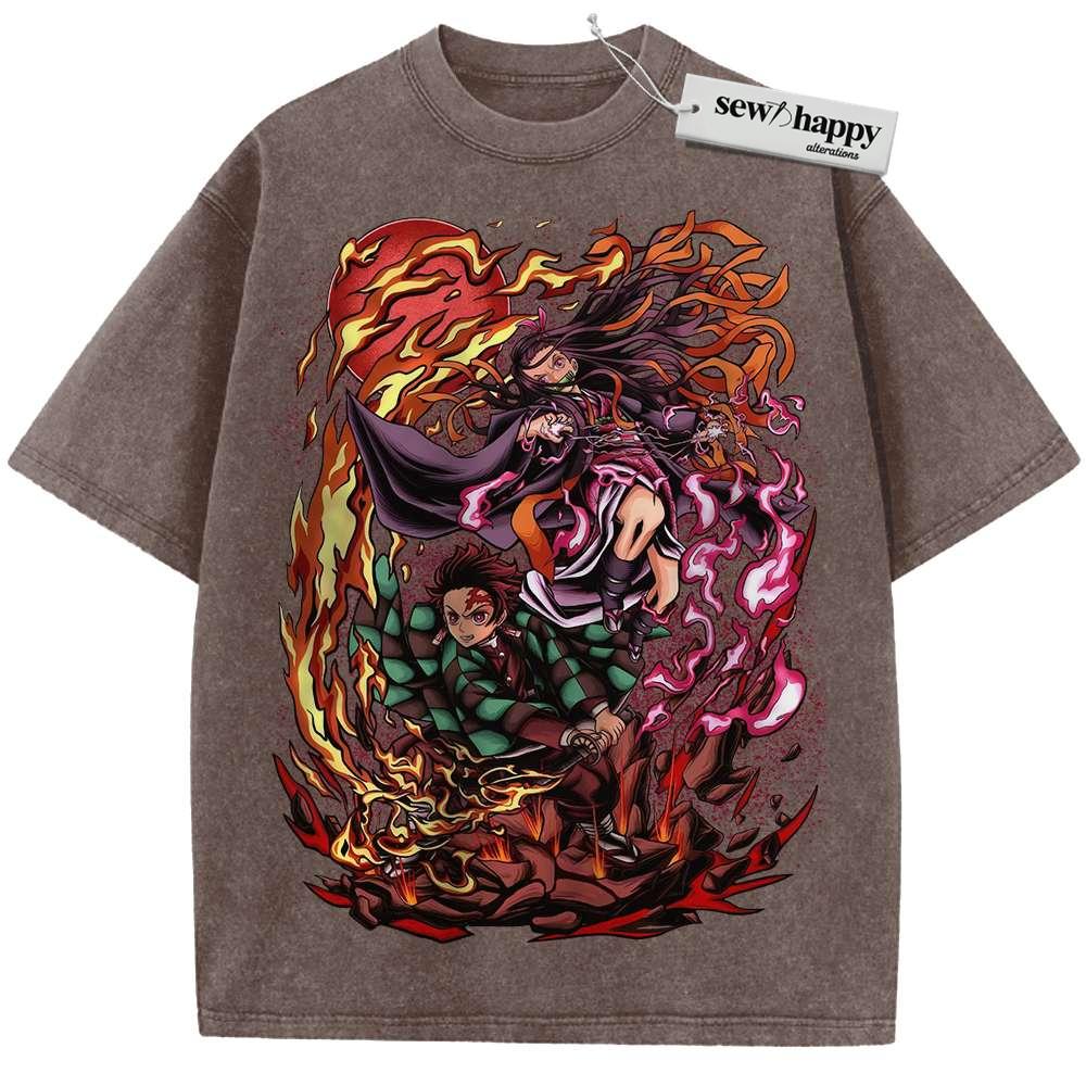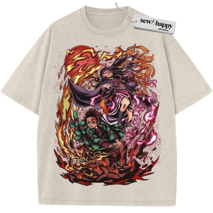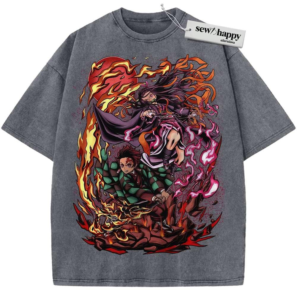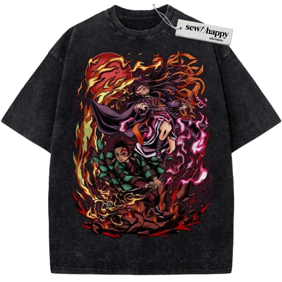 Wash Tee Nezuko vs Tanjiro Kamado Shirt, Demon Slayer Shirt, Anime Shirt, Vintage T-Shirt
