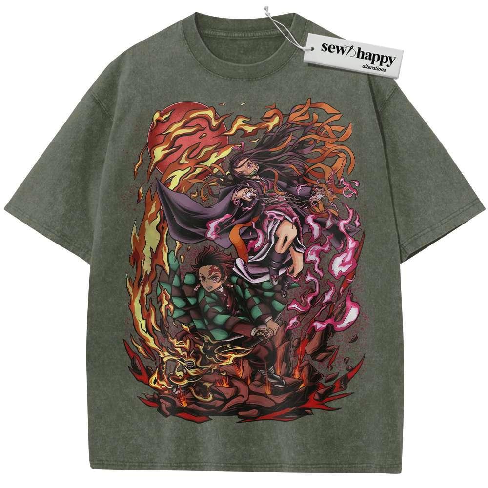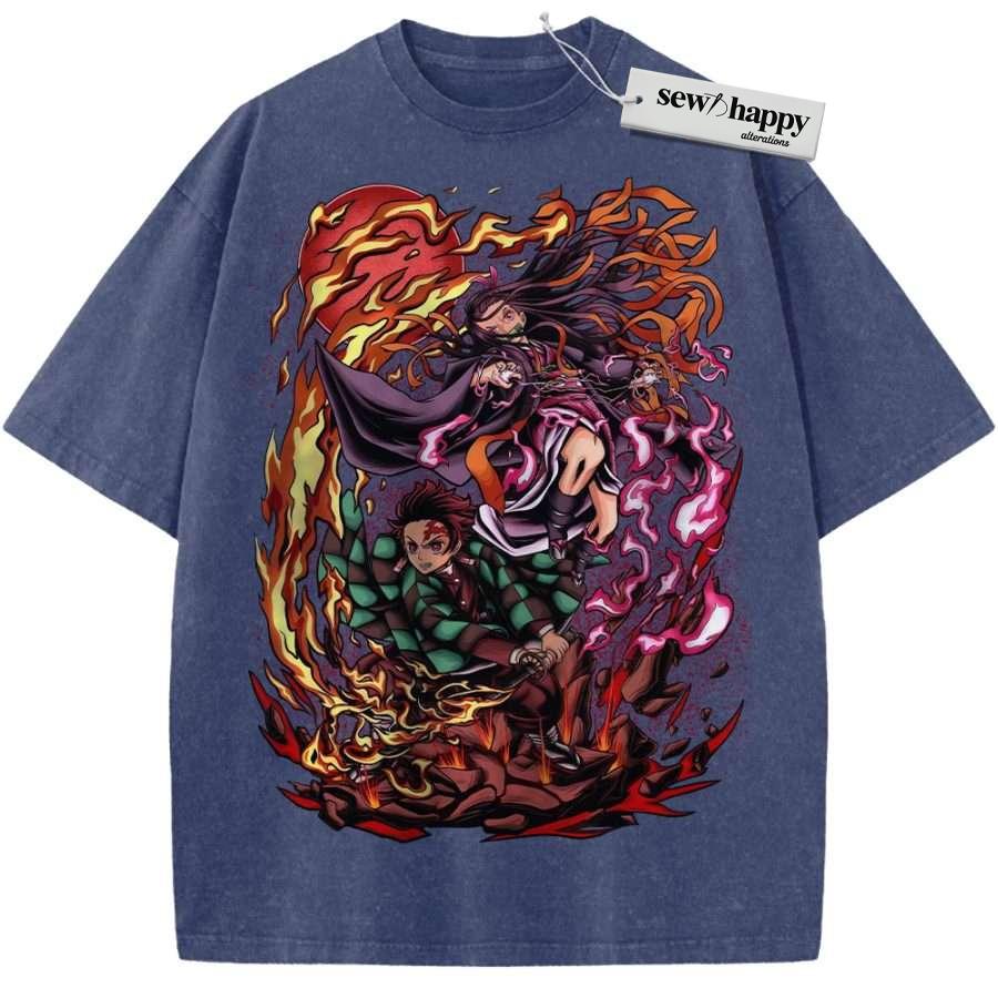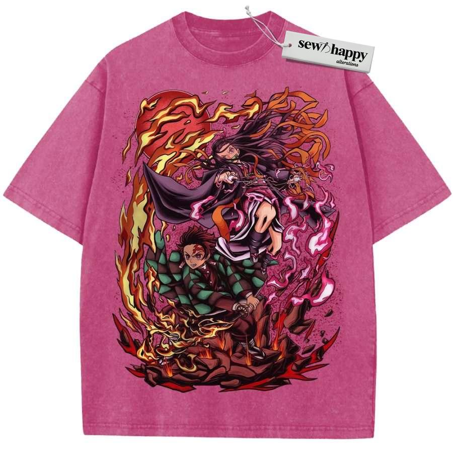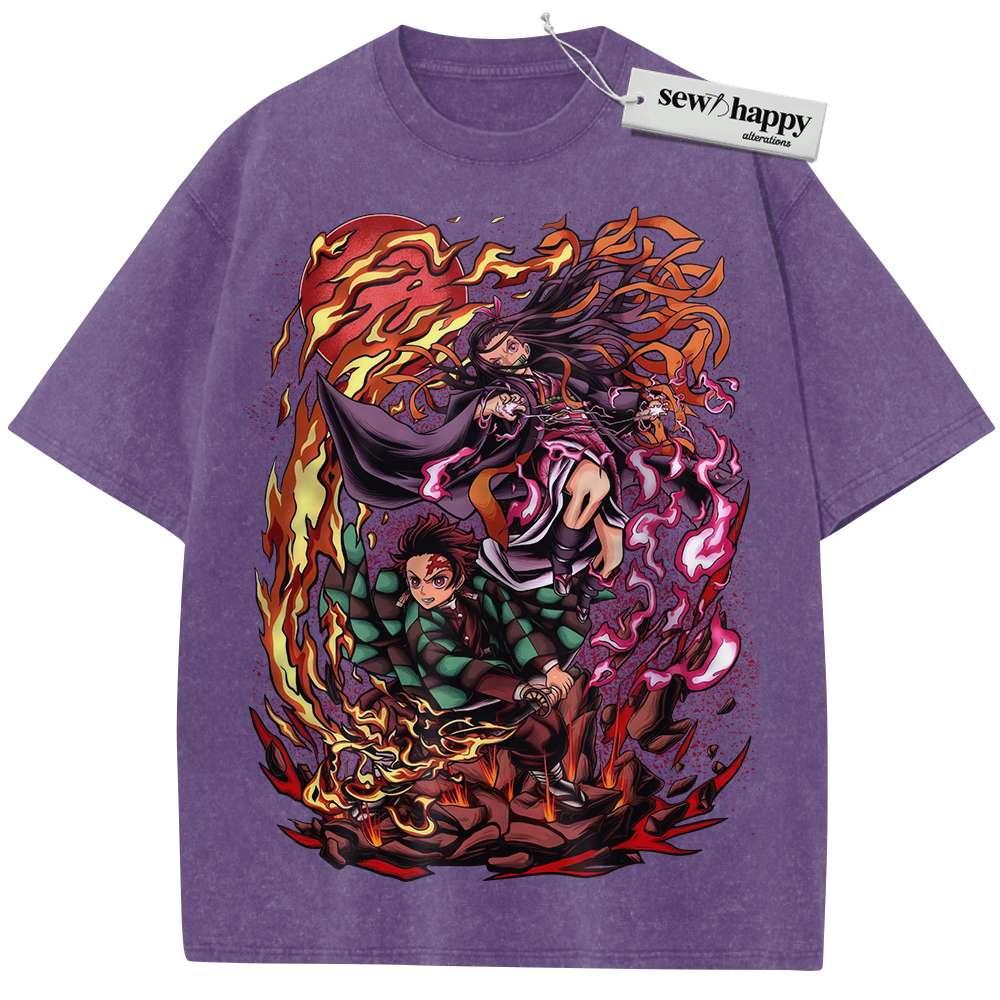Wash Tee Nezuko vs Tanjiro Kamado Shirt, Demon Slayer Shirt, Anime Shirt, Vintage T-Shirt