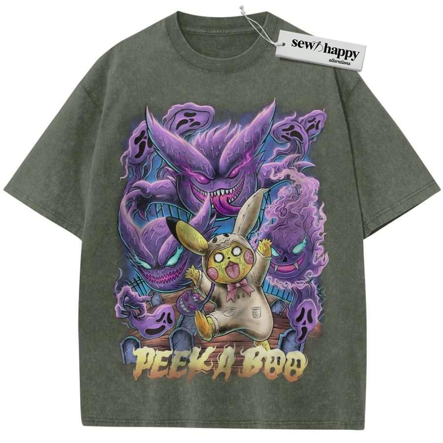 Wash Tee Pikachu Shirt, Gengar Shirt, Pokemon shirt, Anime Shirt, Vintage Tee