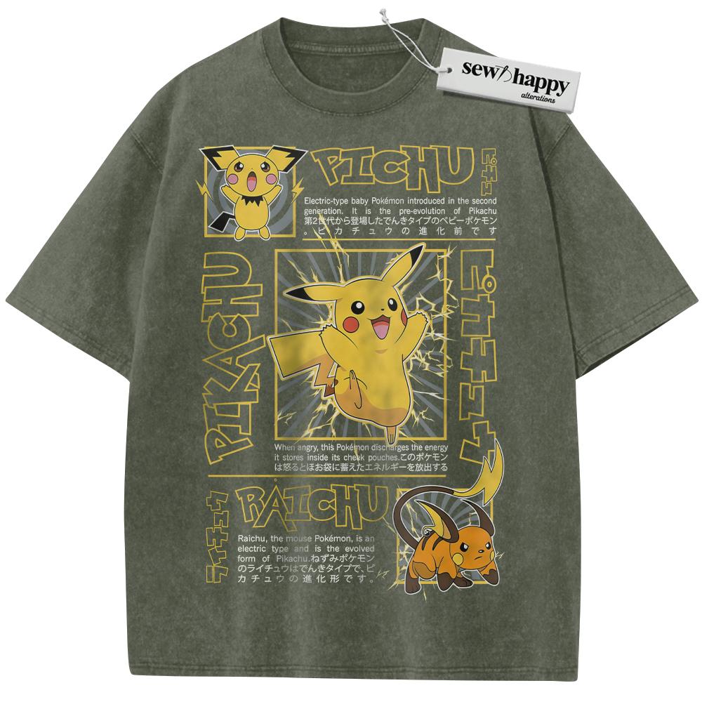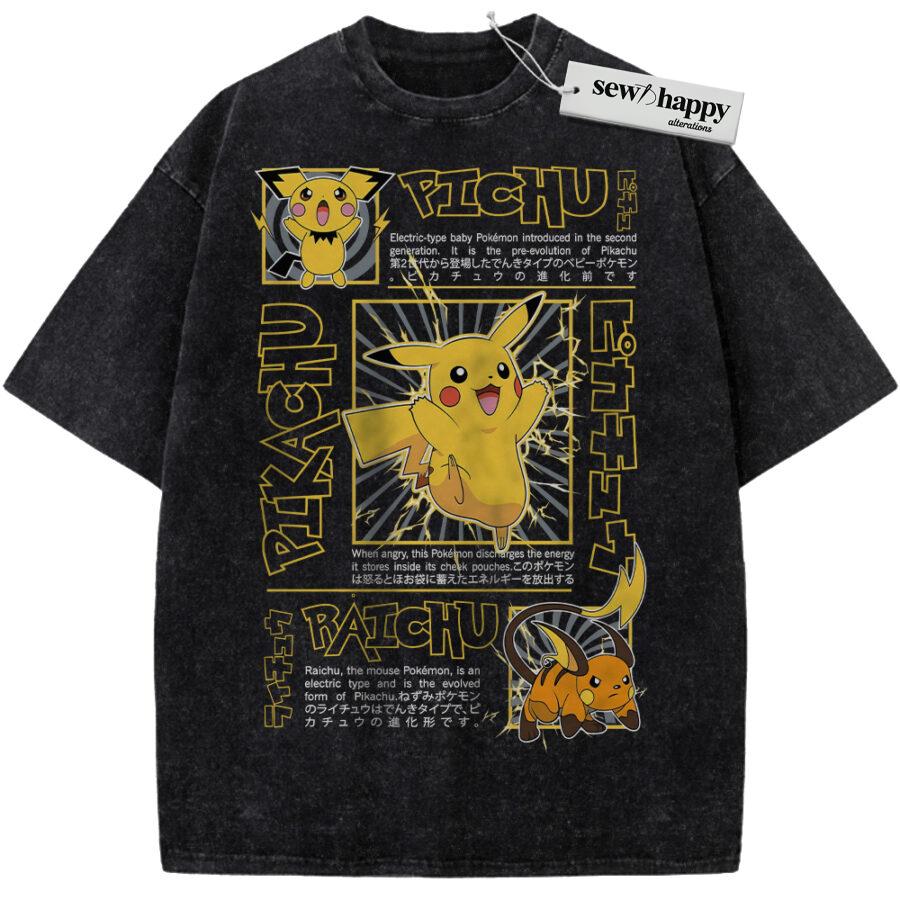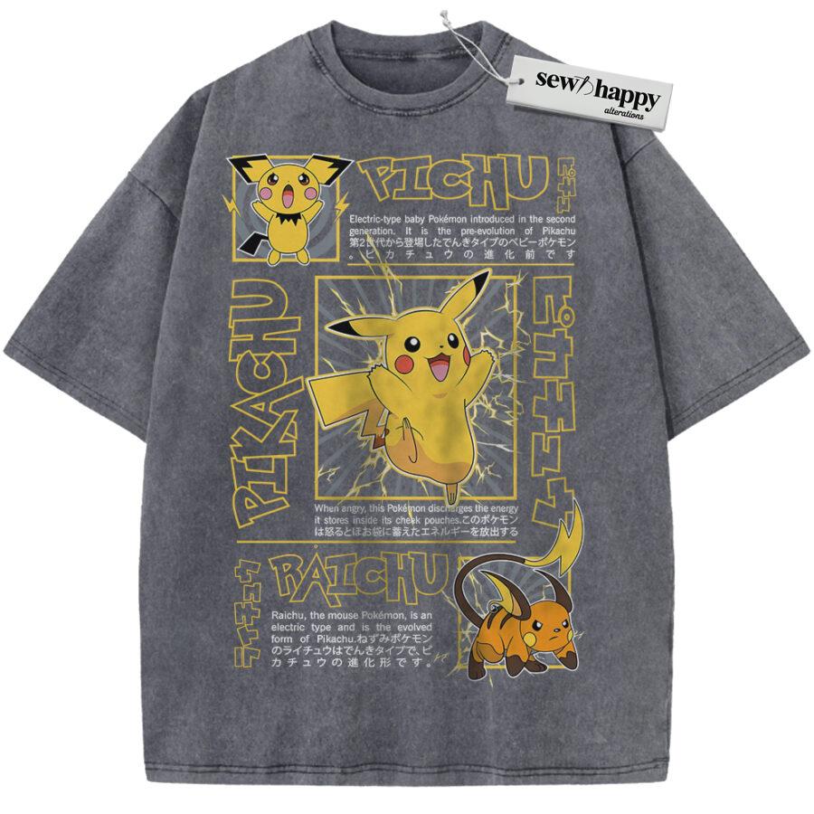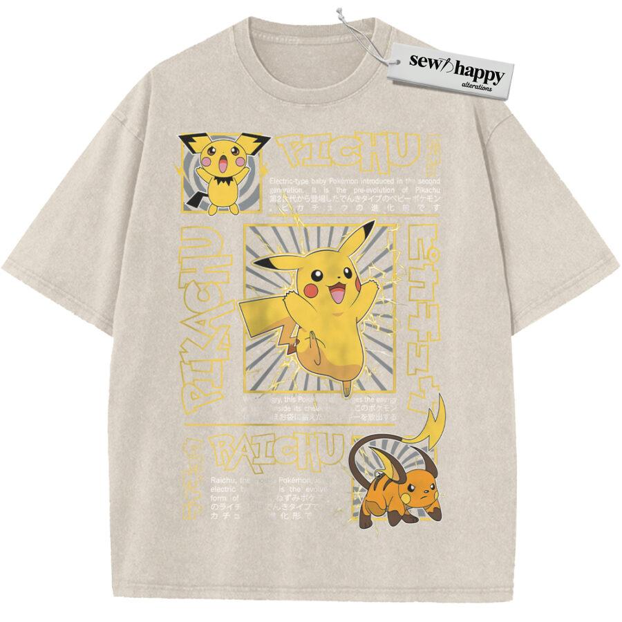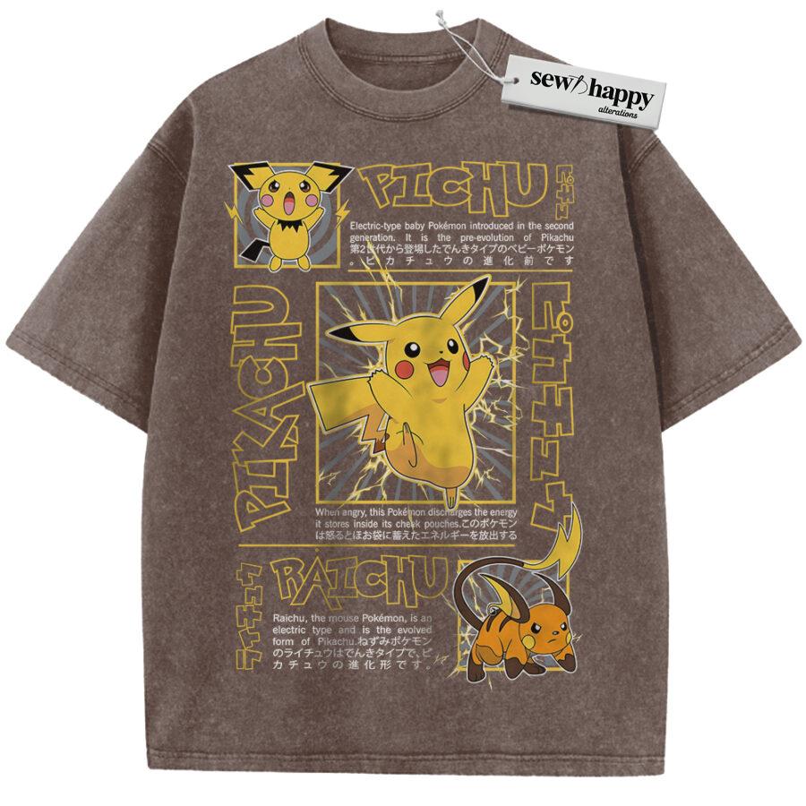 Wash Tee Pikachu Shirt, Raichu Shirt, Pichu Shirt, Pokemon shirt, Anime Shirt, Vintage T-Shirt