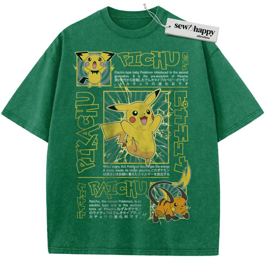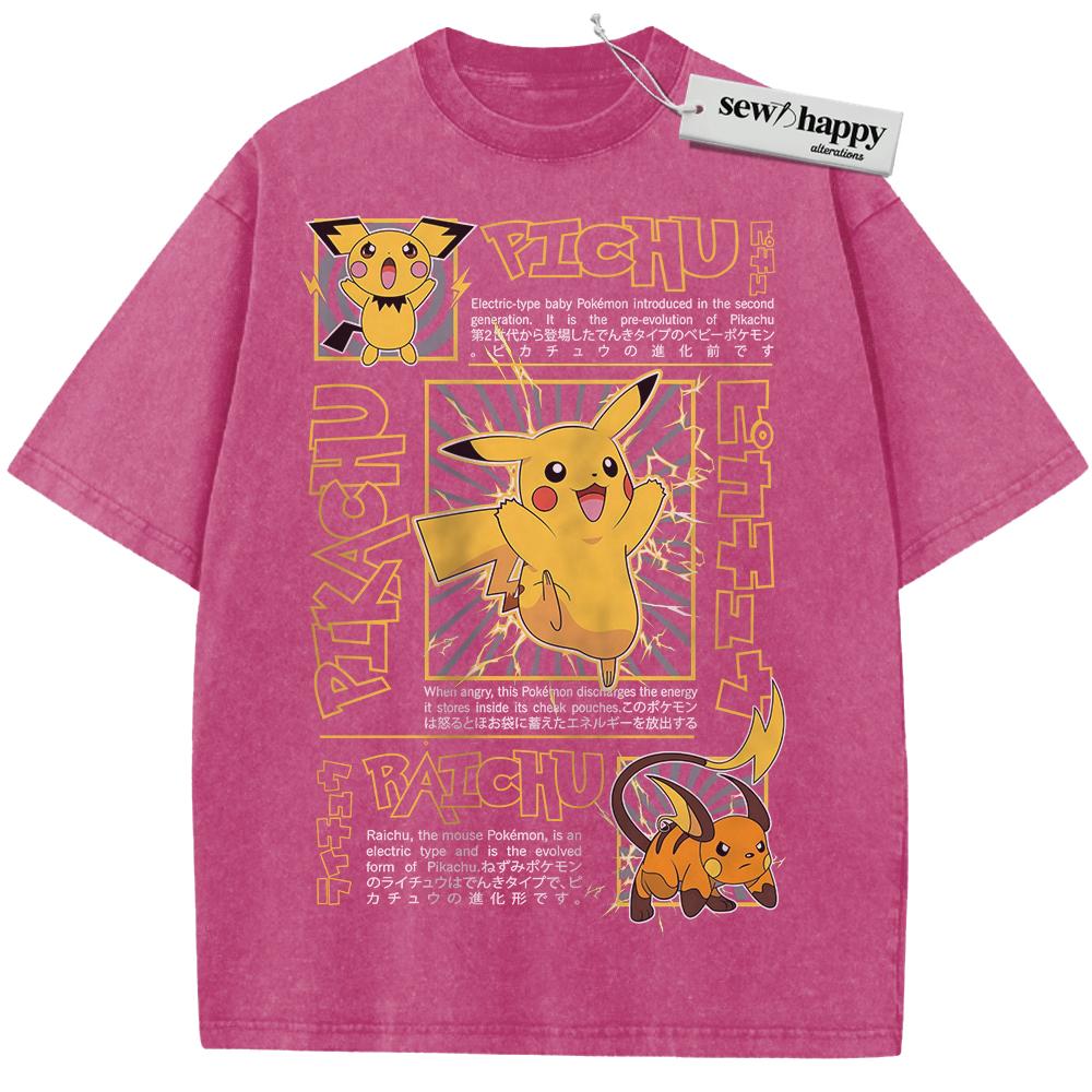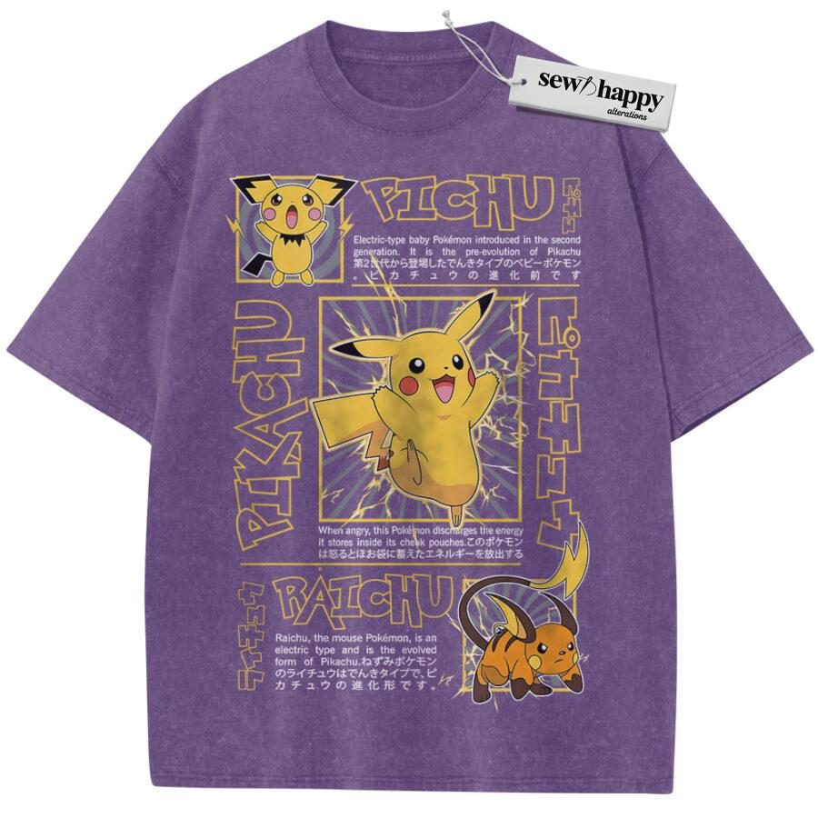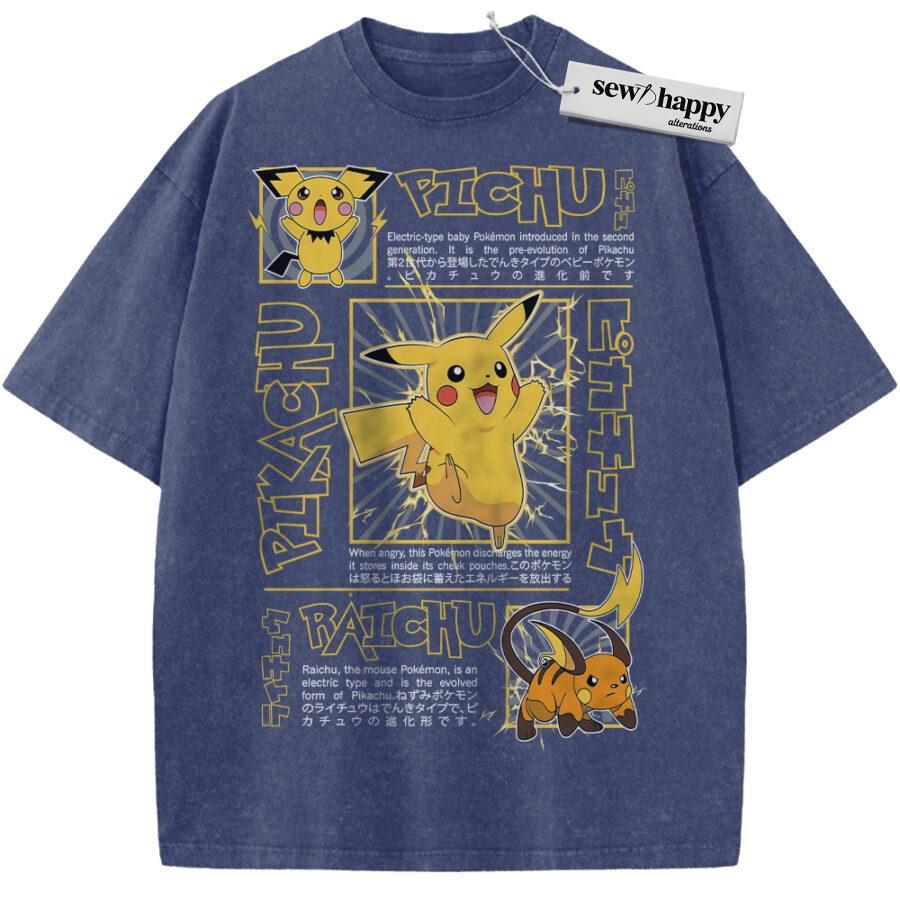Wash Tee Pikachu Shirt, Raichu Shirt, Pichu Shirt, Pokemon shirt, Anime Shirt, Vintage T-Shirt