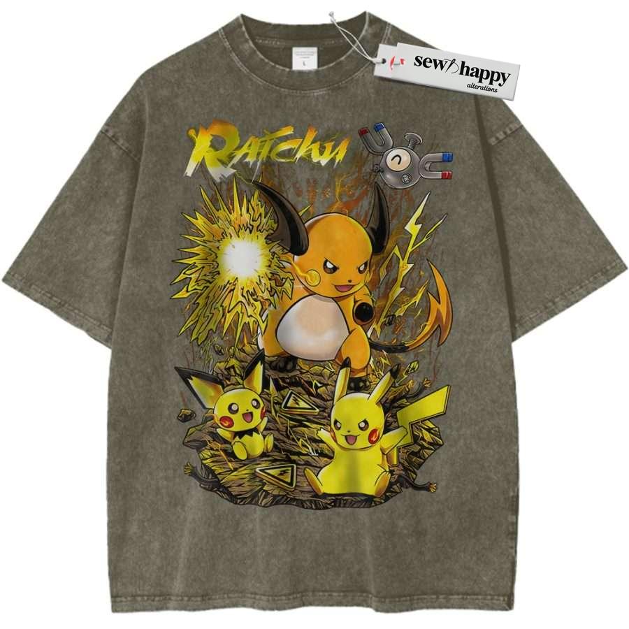 Wash Tee Pikachu Shirt, Raichu Shirt, Pokemon shirt, Anime Shirt, Vintage Tee