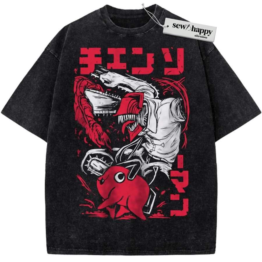 Wash Tee Pochita vs Denji Shirt, Chainsaw Man Shirt, Anime Shirt, Vintage Tee