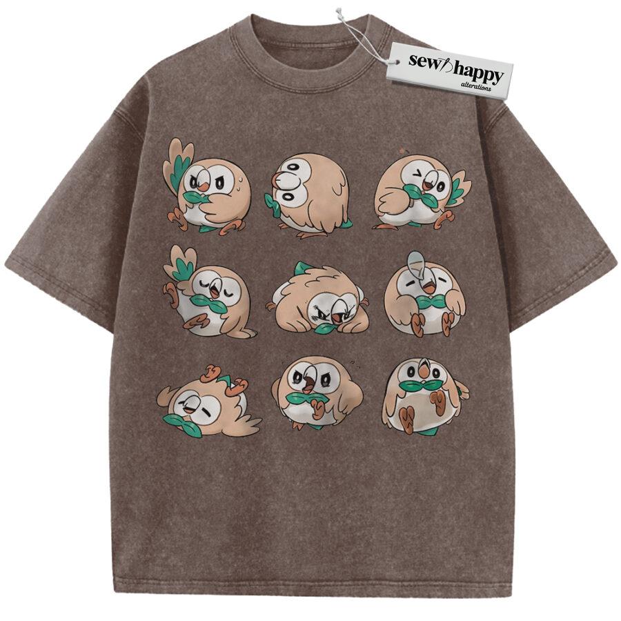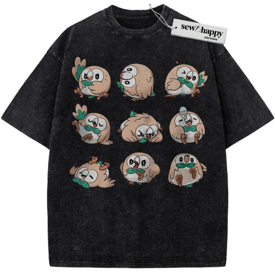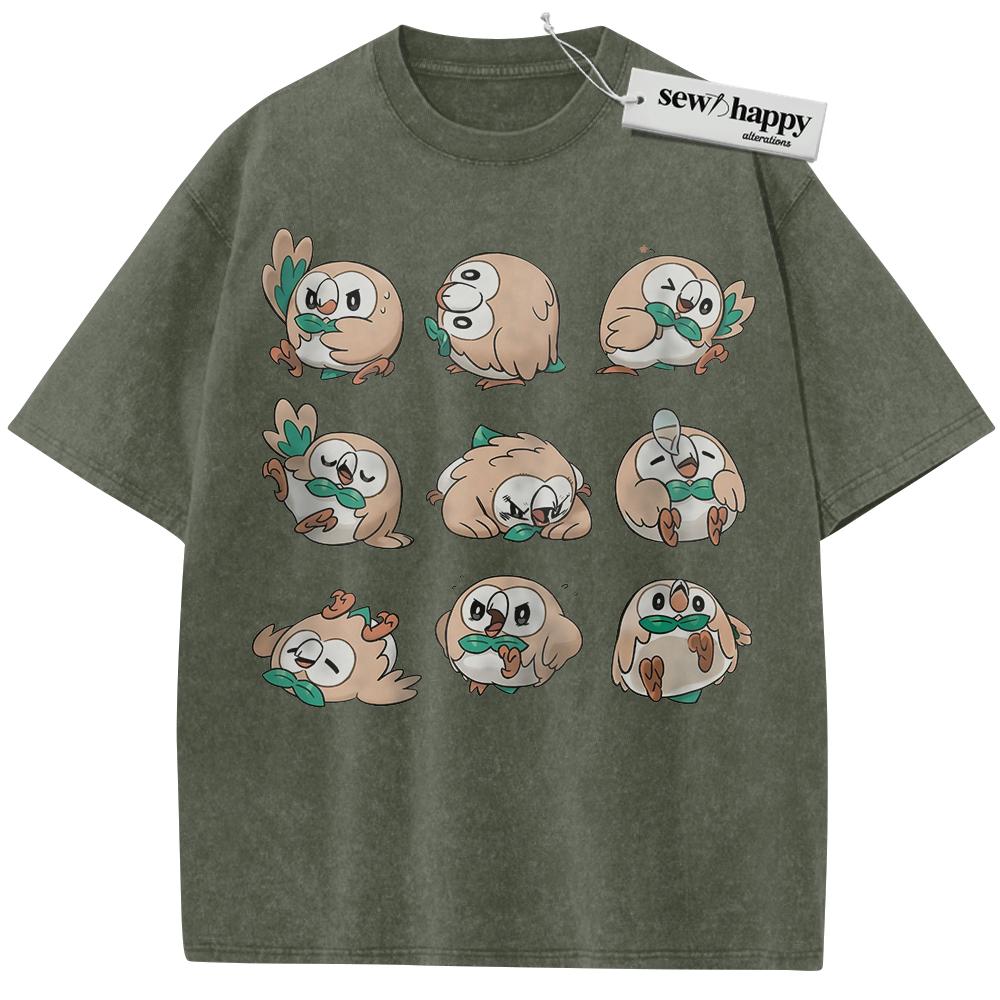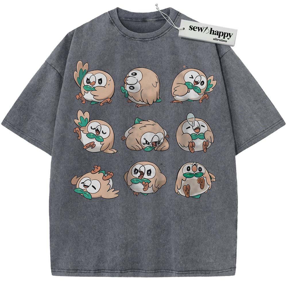 Wash Tee Rowlet Shirt, Pokemon Shirt, PKM Shirt, Anime Shirt, Vintage T-Shirt