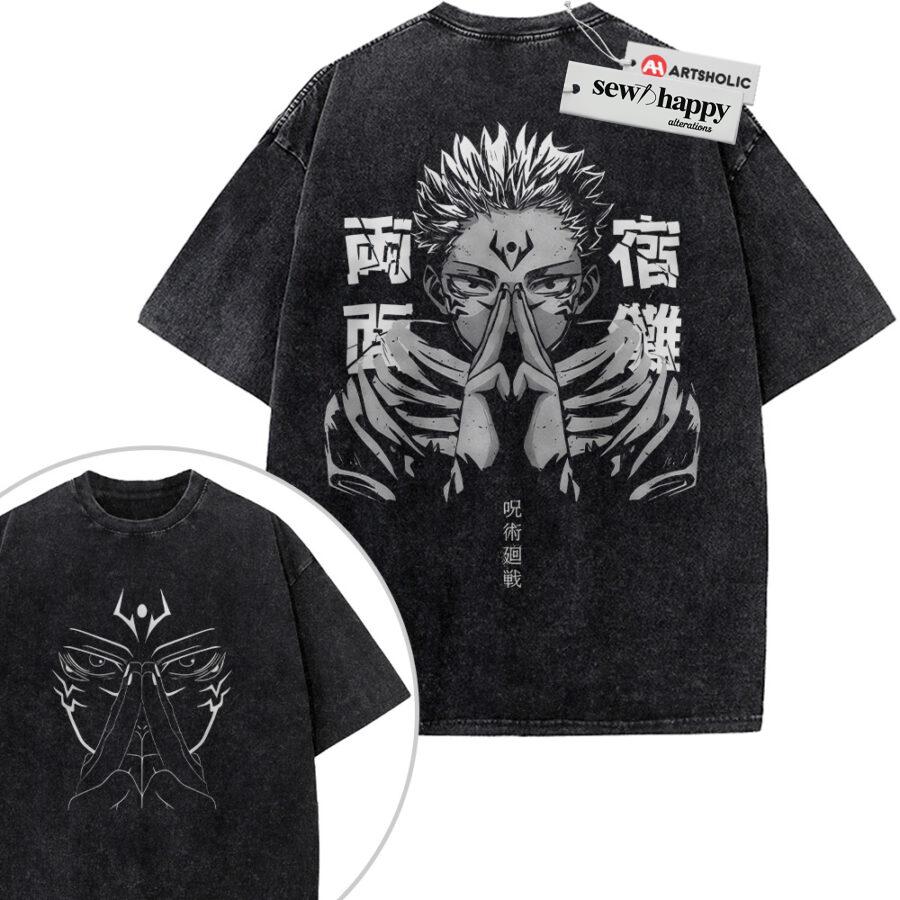 Wash Tee Ryomen Sukuna Shirt, Jujutsu Kaisen Shirt, Anime Shirt, Vintage Tee 2-Sided