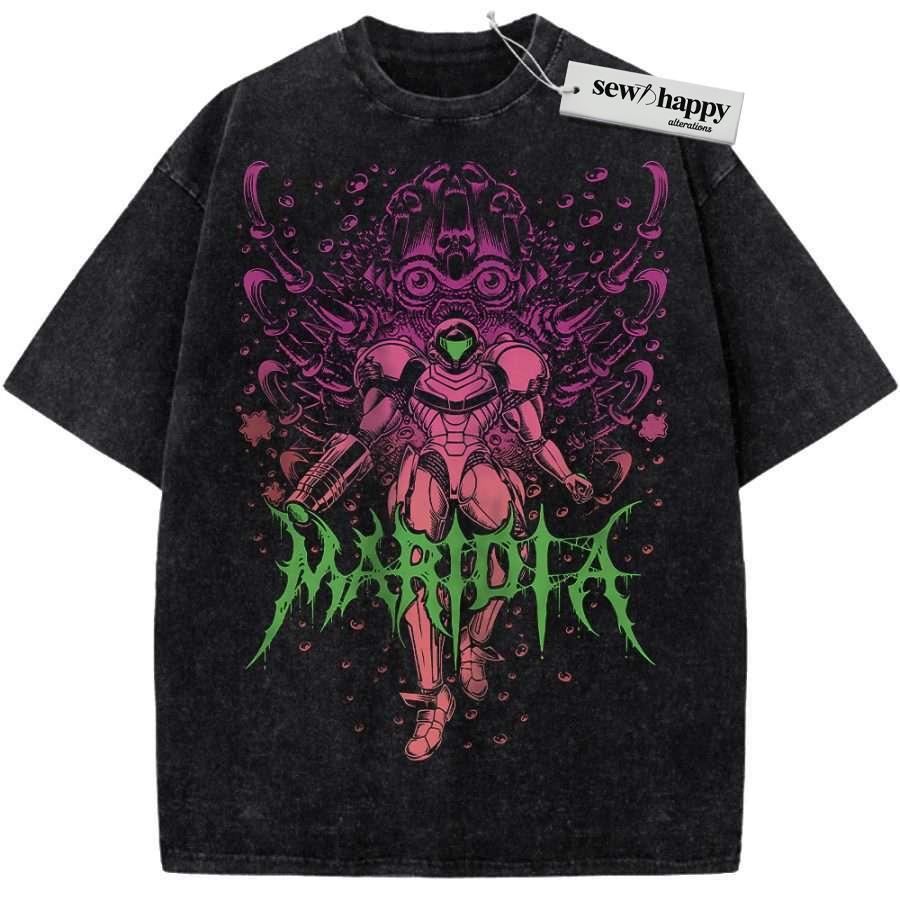 Wash Tee Samus Aran Shirt, Metroid Shirt, Game Shirt, Vintage T-Shirt