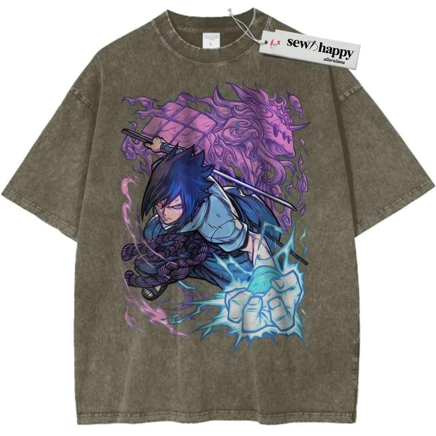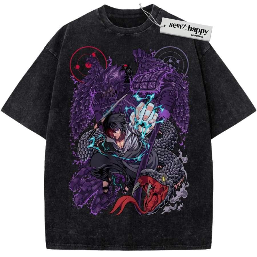 Wash Tee Sasuke Uchiha Shirt, Naruto Shirt, Anime Shirt, Vintage T-Shirt