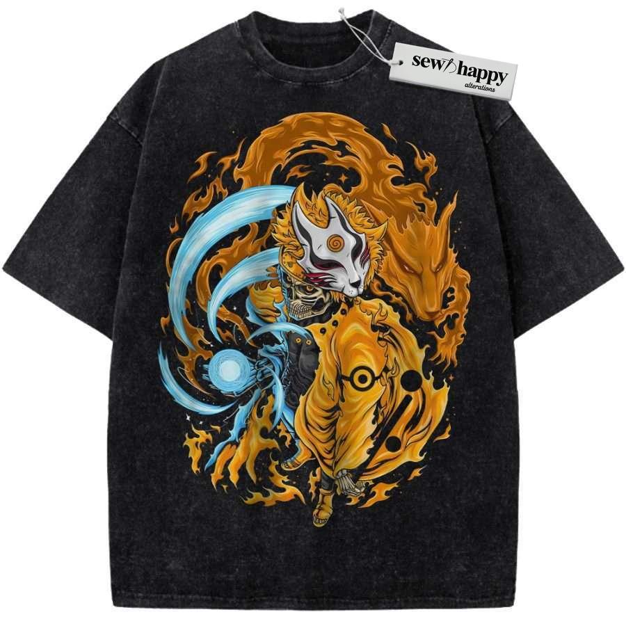 Wash Tee Skeleton Naruto Uzumaki Shirt, Anime Shirt, Vintage T-Shirt